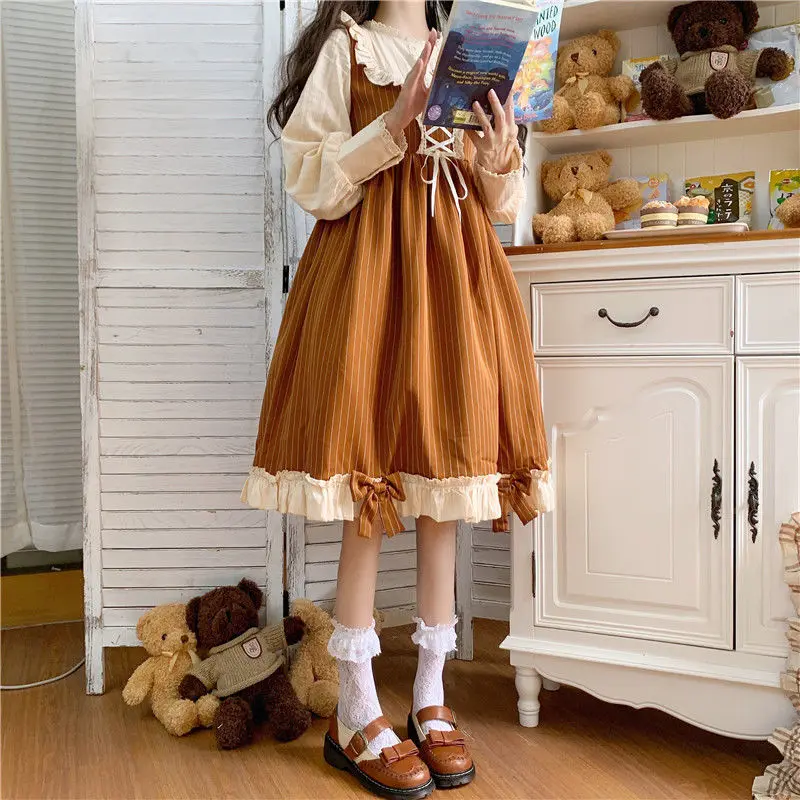 Spring Kawaii Lolita Dress Women Elegant Patchwork Bandage Party Mini Dress Female Japanese Harujuku Korean Sweet Dress 2021 New