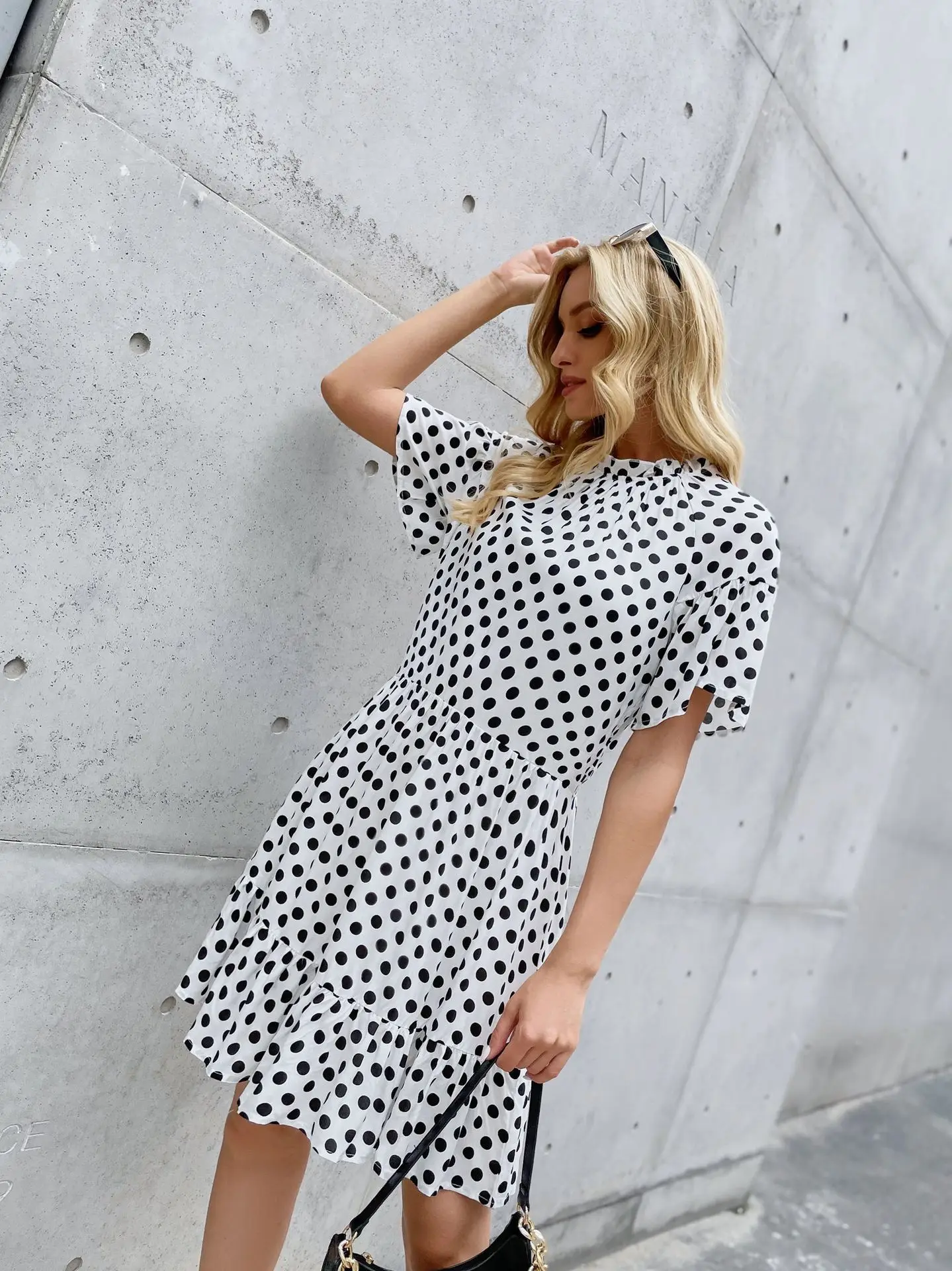 Article number: Summer 2021 Women 's O-neck New Chiffon derss 01 Fabric:85%cotton&15%polyester fiber