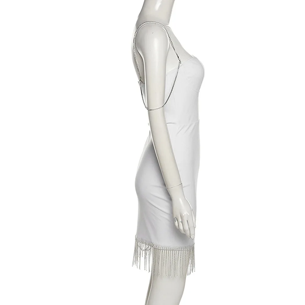 Summer For 2022 Strap Women's Clothes Black Sleeveless Tassel Elegant Casual Basics Evening Party Sexy Prom Corset Mini Dress