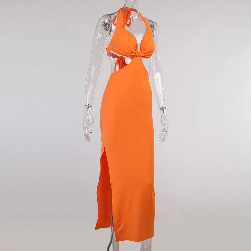 Summer Women Bodycon Halter Dress Long Midi Vintage Backless Elegant Birthday Party Dress Outfits Sexy Club Clothes Vestido Robe