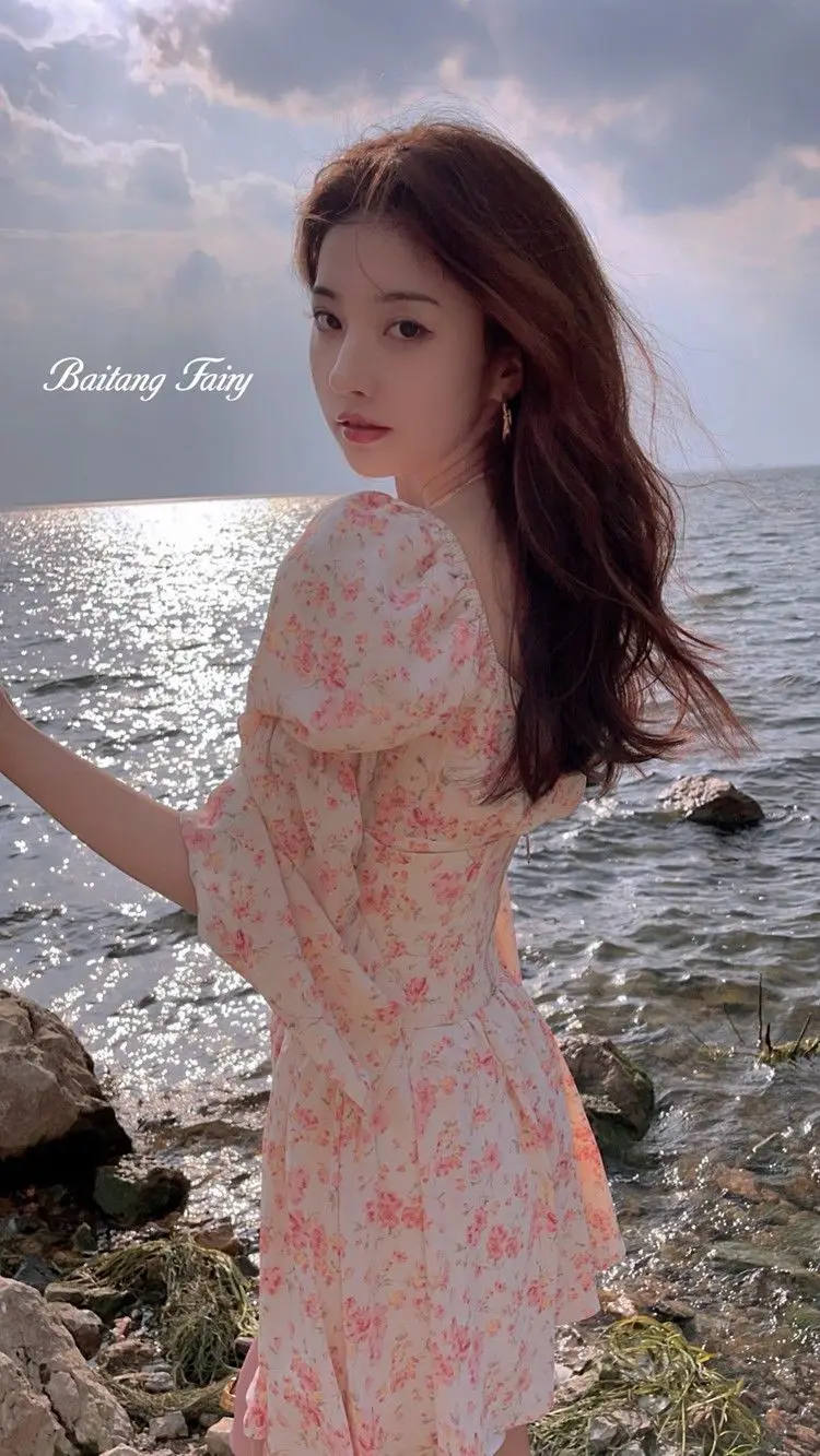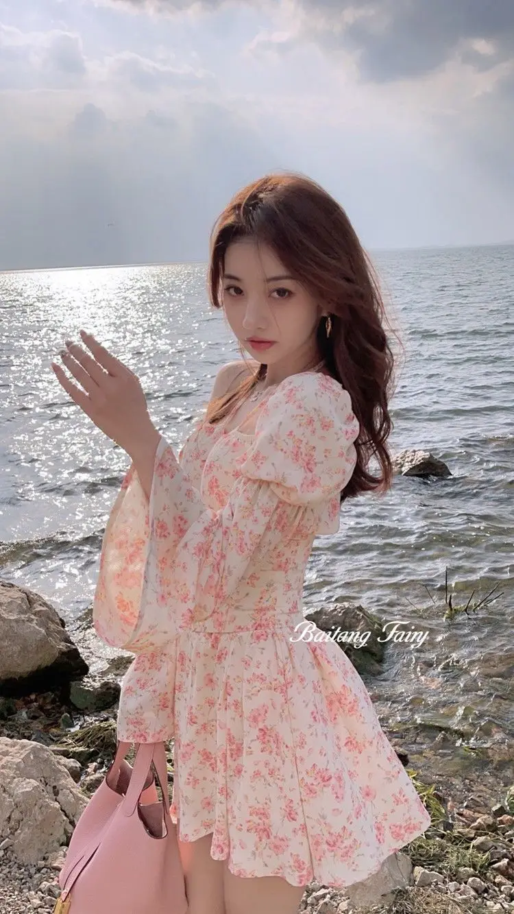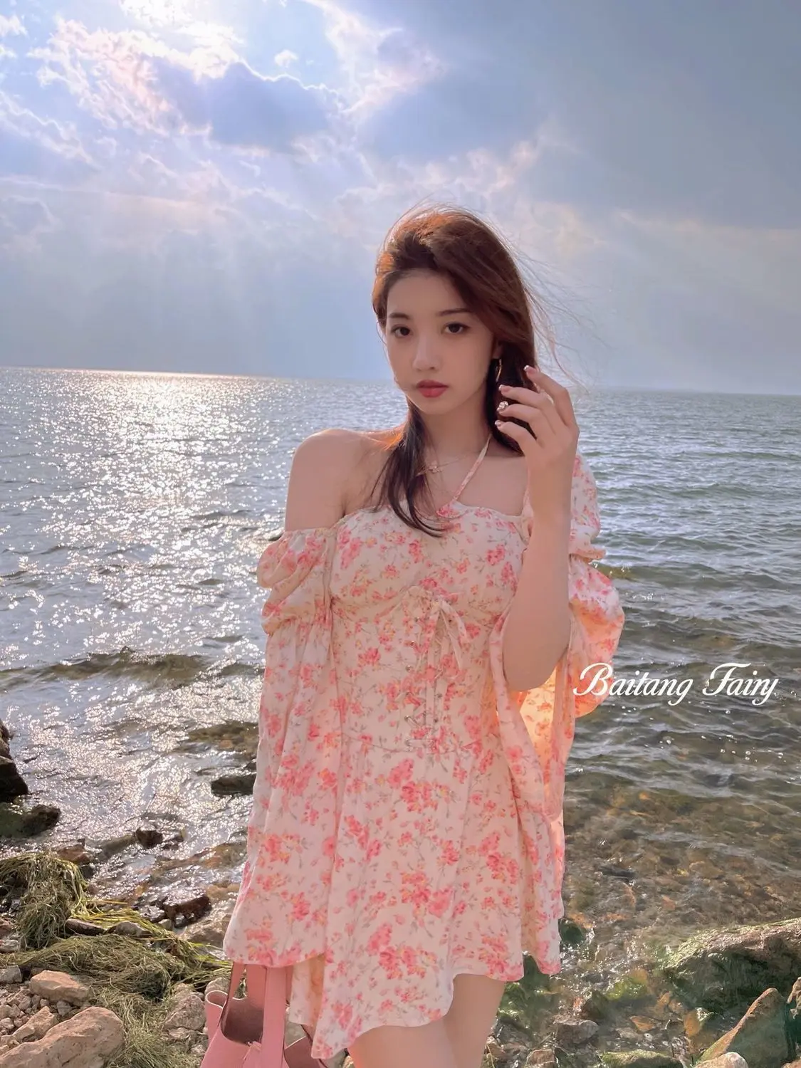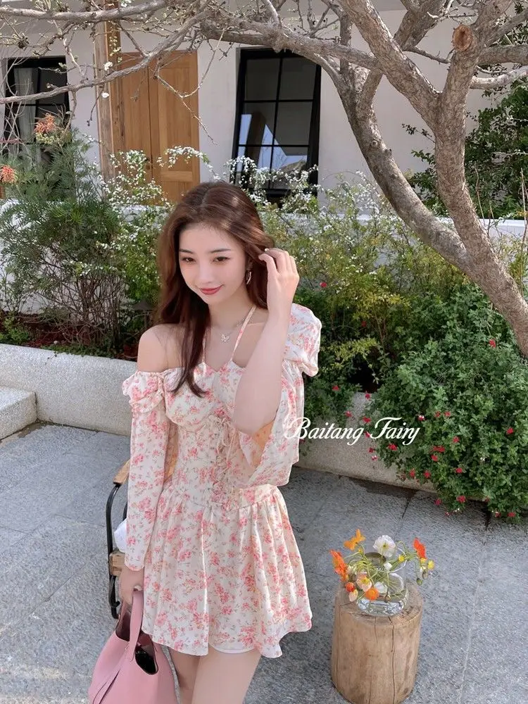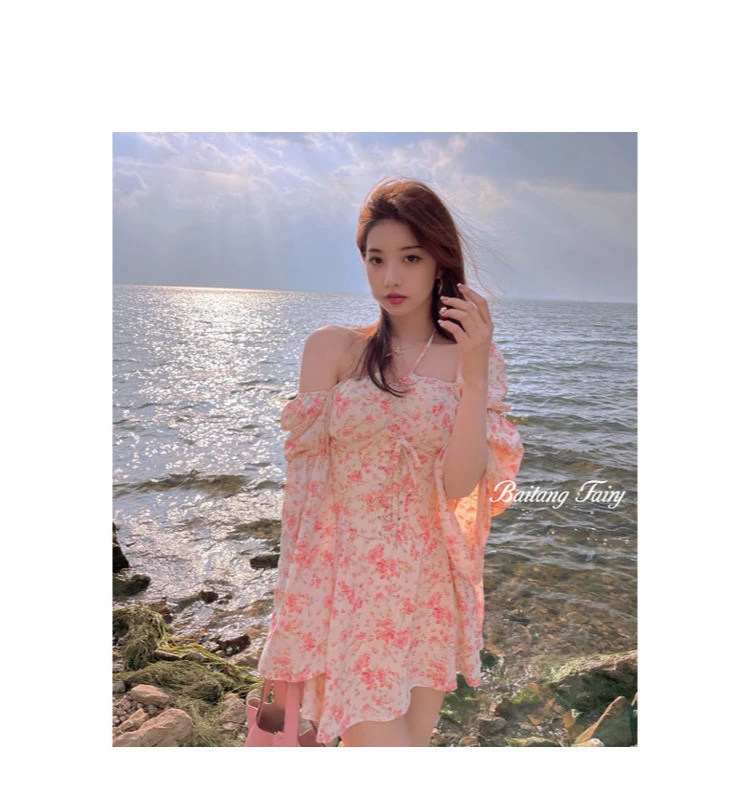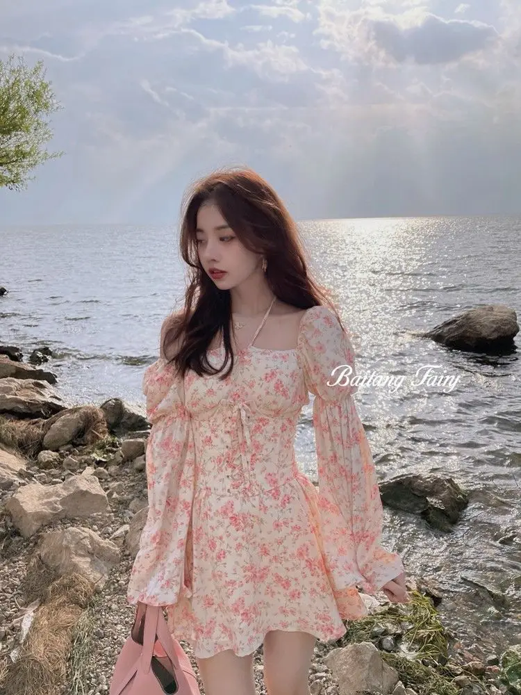 Sweet Floral Dress Women Elegant Chic Sexy Designer Party Mini Dress Female Casual Outdoor Beach Print Kawaii Dress Summer 2021