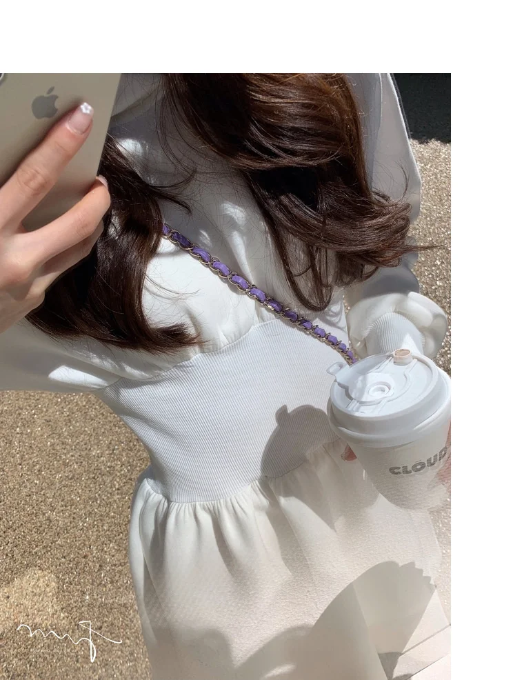 White Short Skirt Summer Photo Beautiful Skirt Korean Seaside Holiday Dress 2021 Spring Sweater Dress Thin