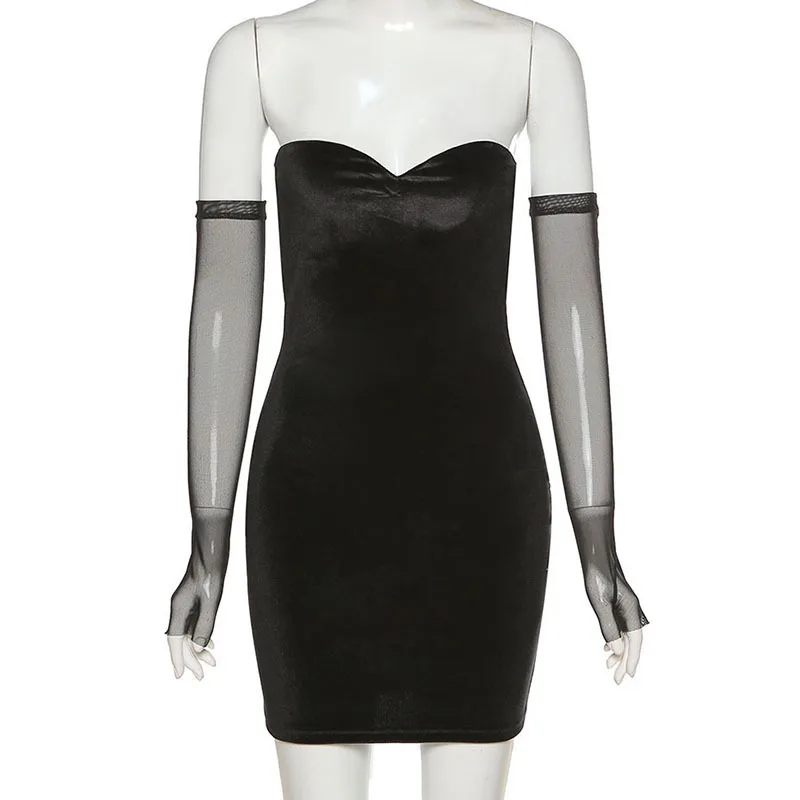 Women's Dress Fashion Sexy Knitted Sleeves Birthday Party Beach Black Strapless Dress Women's Removable Female Evening Vestidos