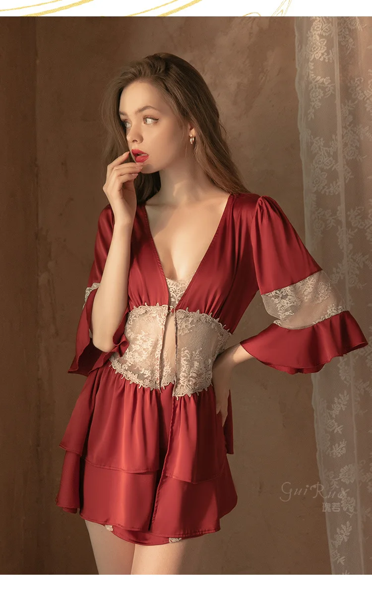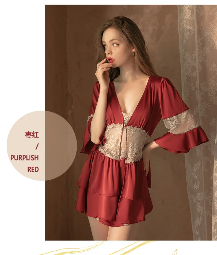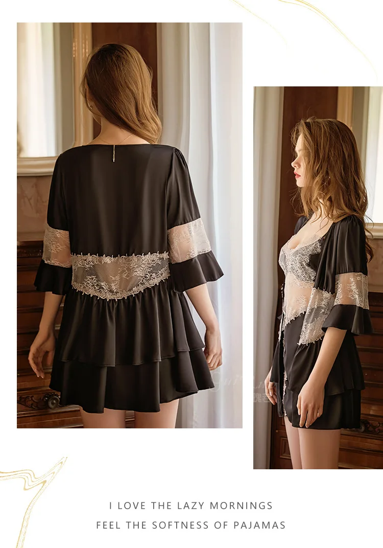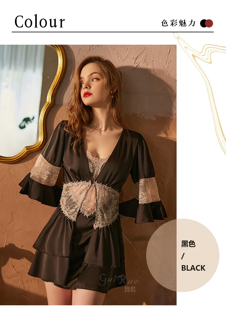 dress length 64cm,bust 82cm,fit weight 40-65KG The robe is 75cm long, 91cm bust, suitable for weight 40-65KG