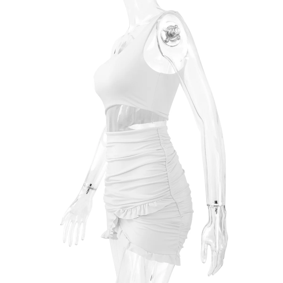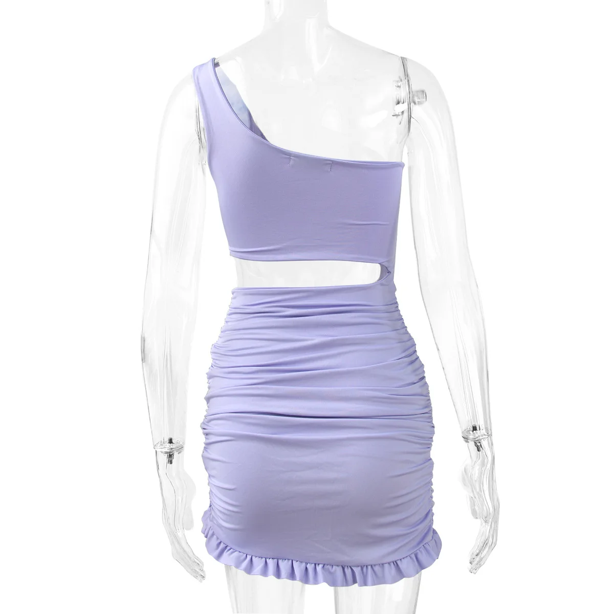 Women One Shoulder Mini Bodycon Summer Dress Club Hollow Out Ruched Backless White Purple Party Ruffle Bandage Women Sexy Dress