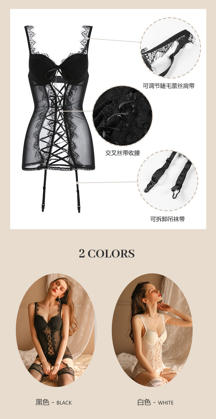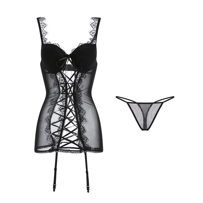 Women Porno Lingerie Sexy Mesh See-though Lace Hollow Bodysuit Thong Femme Erotica Sexi Nitghtdress Padded Chest G-string Set