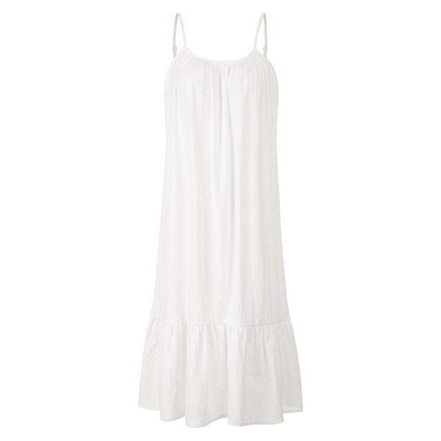 Women Ruffle Dress Summer Spaghetti Straps Beach Dress Sexy Sleeveless Backless Pleated Dress Cute Sweet Vestido Femme 2021 New