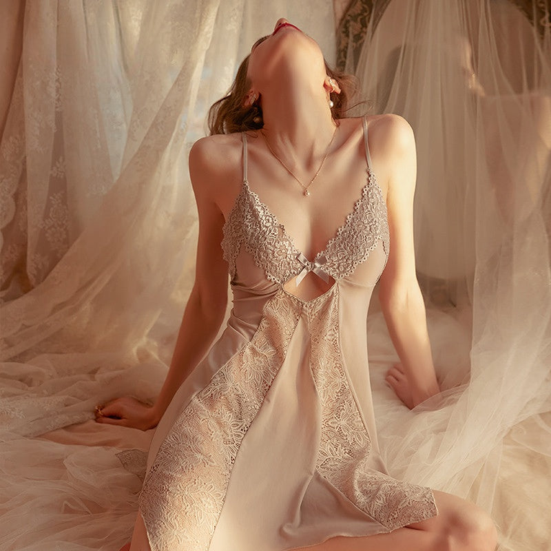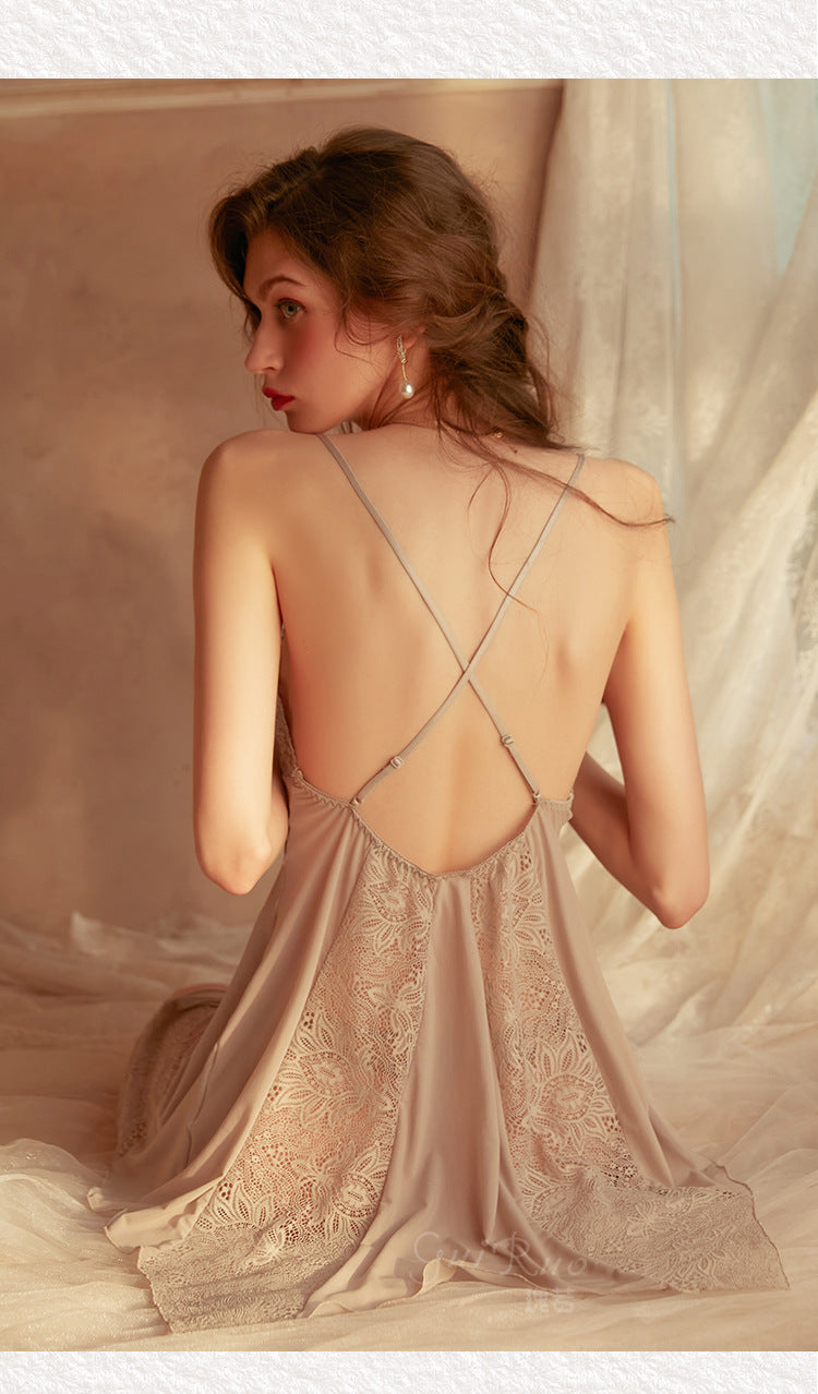 Women Sexy Lingerie Set Lace Gauze See-through Exotic Nightdress Thong Backless Cross Halter Skirt slutty Clothes Baby Dools