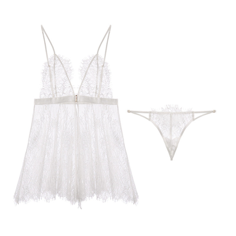 Women Sexy Lingerie Set Nightdress Thong Exotic Dress Perspective Mesh Lace Hollow Front Buckle Porno Adult Slutty Skirt Femme