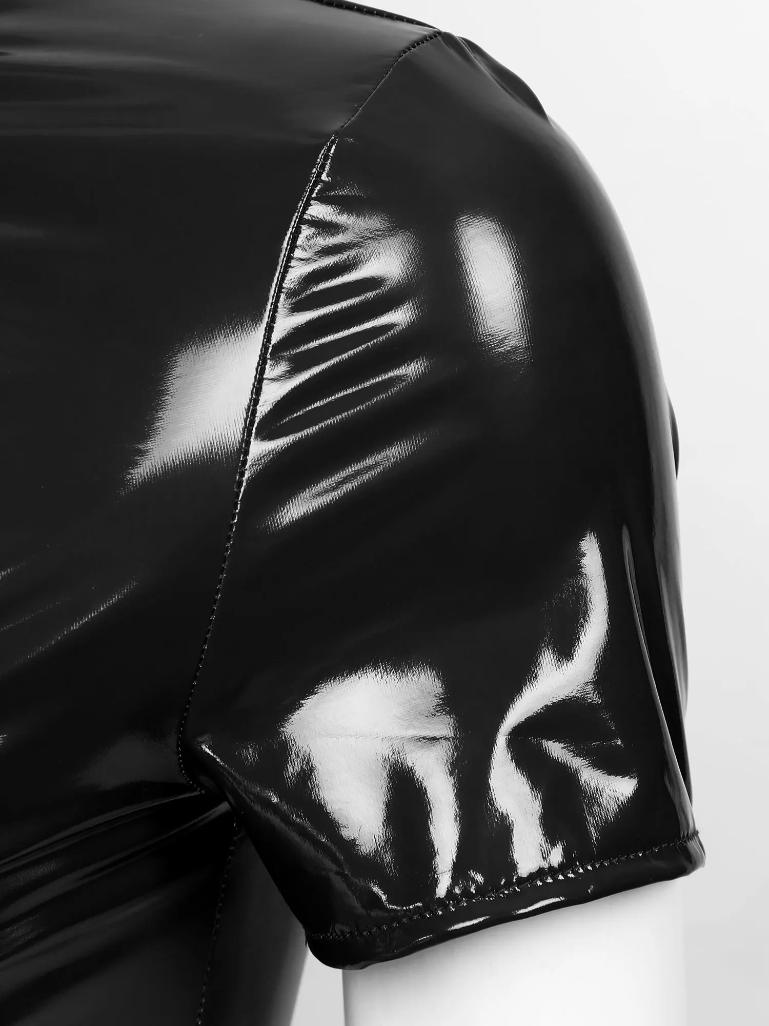 Womens Sexy Patent Leather Bare Breast Side Hole Mini Dress Hot Erotic Wear Wetlook Latex Fetish Dress Lingerie Catsuit Clubwear