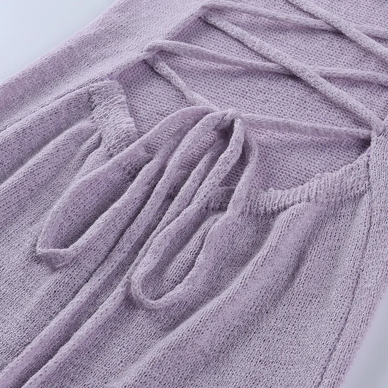 Y2K 2022 Spring Fall Fashion Sling Backless Casual Party Sexy Bandage Women's Clothes Prom One Piece Basic Maxi Knitted Dress