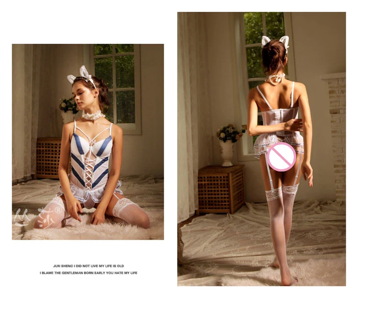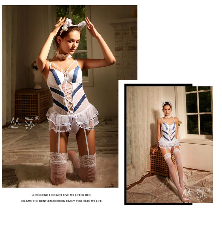 Young Girl Sexy Lingerie Vest with Garter Female Nightclub Hot Student Uniform Seduction Gather Straps Short Nightdress Suit