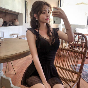 Korean Style One Piece Swimwear Women Padded Swimwear Push Up Swimsuit Bathing Suit sexy Lady Monokini Beachwear Black Swimdress  - Regular price