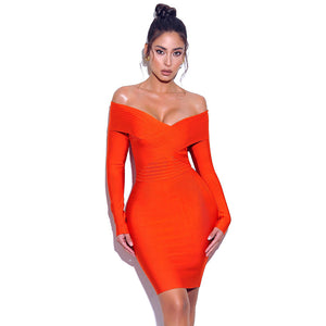 Wholesale High Quality Sexy Off Shoulder V Neck Long Sleeve Elegant Celebrity Party Bandage Dress
