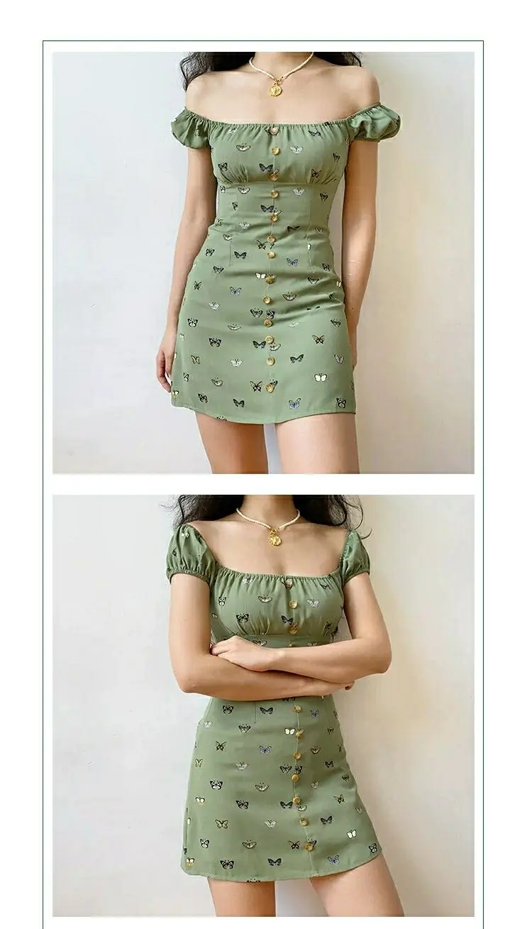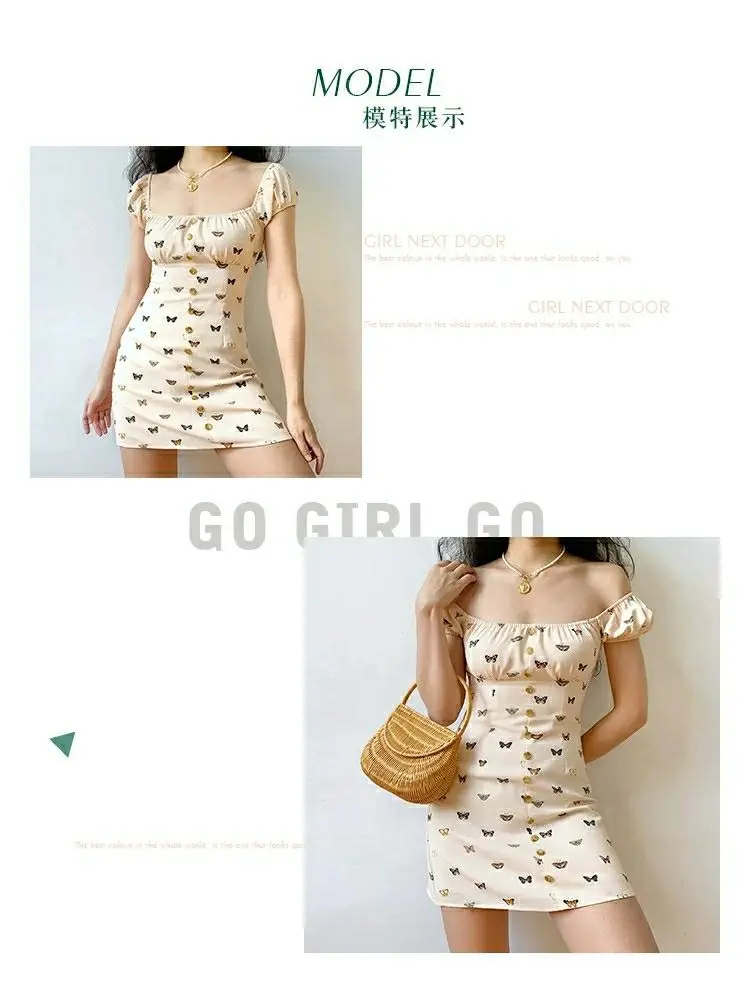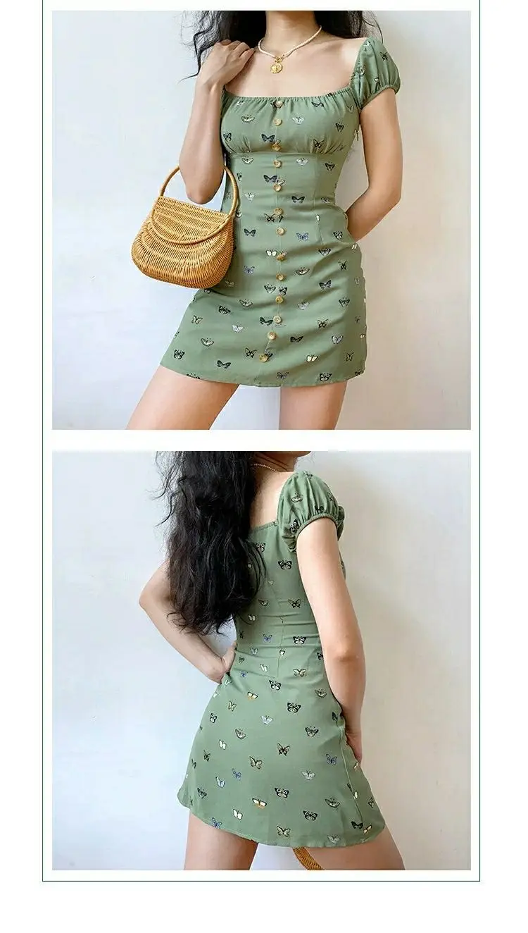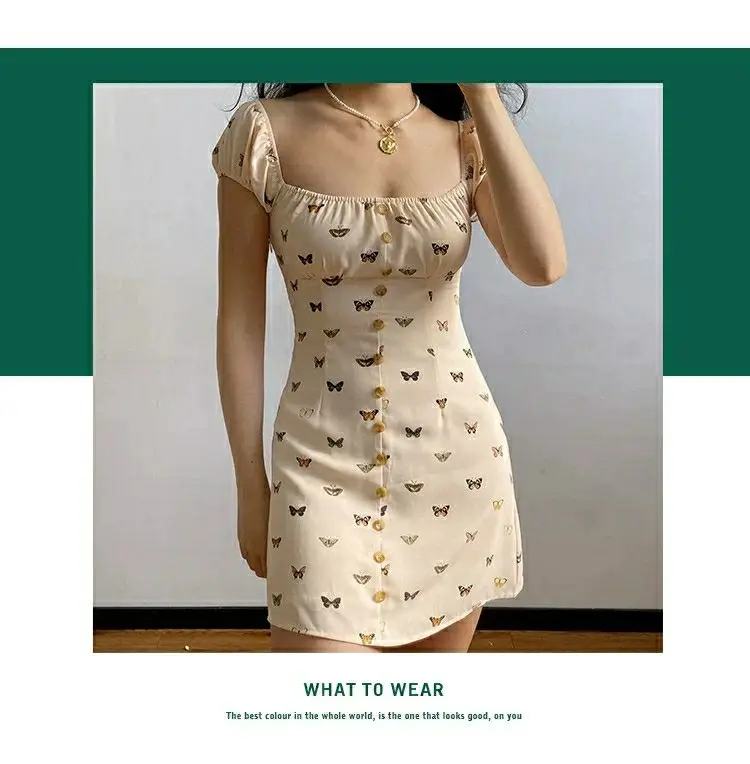 2021 Summer Butterfly Print Boho Tie Neck Mini Sexy White Women Dress Elegant Puff Sleeve Y2k Casual Party Beach Light Dresses