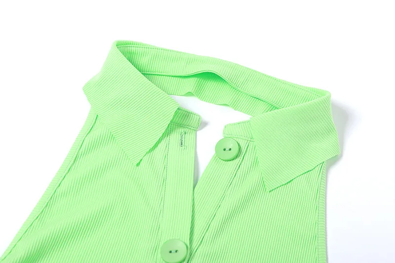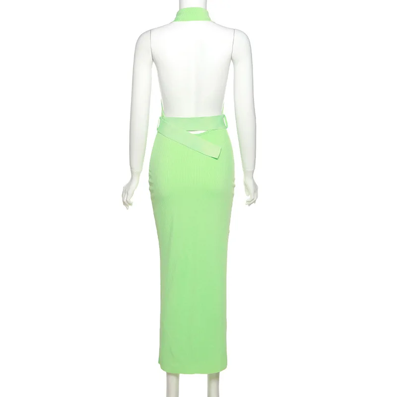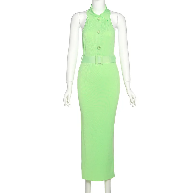 2022 Elegant Fashion Halter Sexy Backless Split Maxi Dress for Women Summer Button Up Green Knit Shift Dresses Clothes Vacation