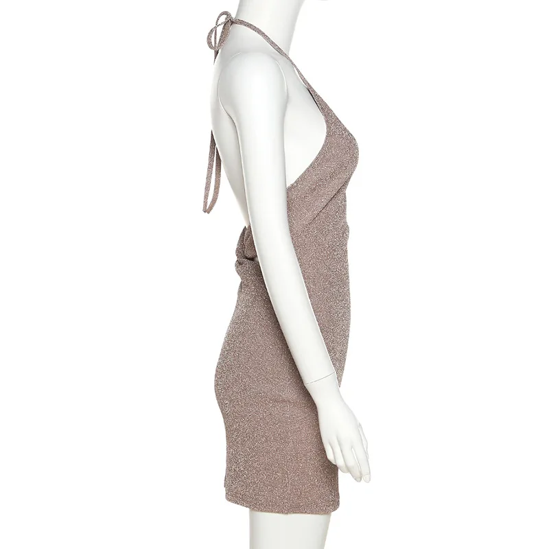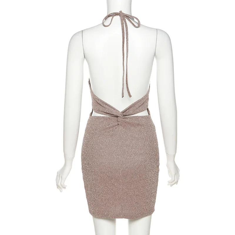 2022 Elegant Halter Summer Women'S Clothes Pinkd Romper Sexy Cutout Slit Evening Party Prom Mini Dresses Vestidos Streetweat