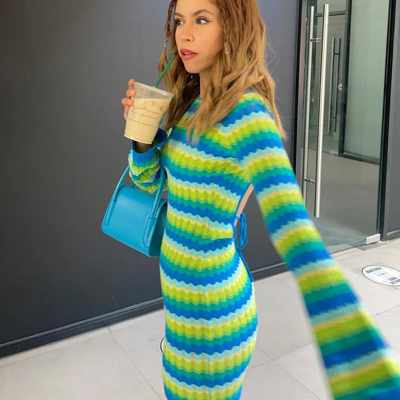 2022 Fashion Flare Sleeve Sexy Cut Out Ruched Dress Outfits Women Party Club Summer Mesh Sheer Dresses Bodycon Clothes