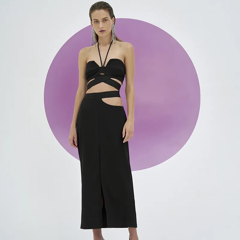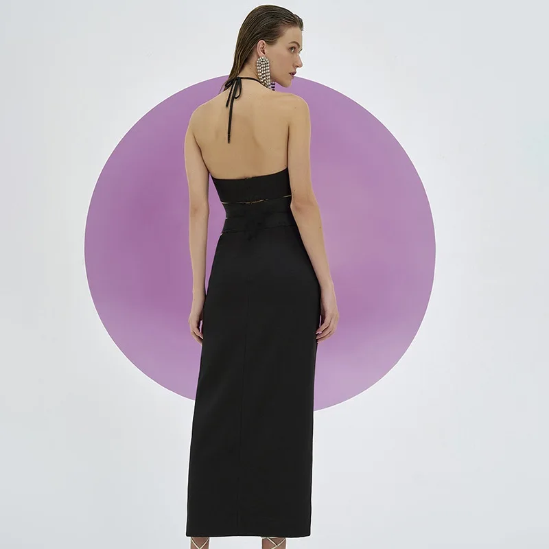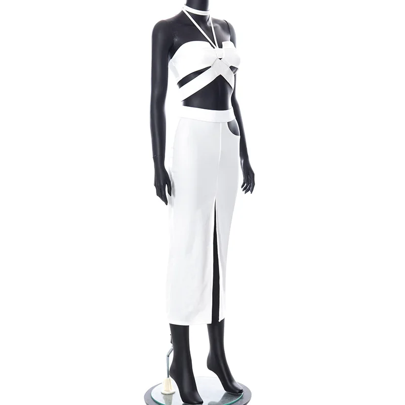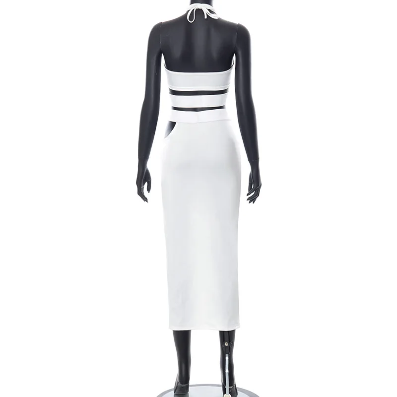 2022 Ribbed Knitted Sexy Backless Split Maxi Dress for Women Summer Holiday Sleeveless Straps Bodycon Dresses Clothes Beach