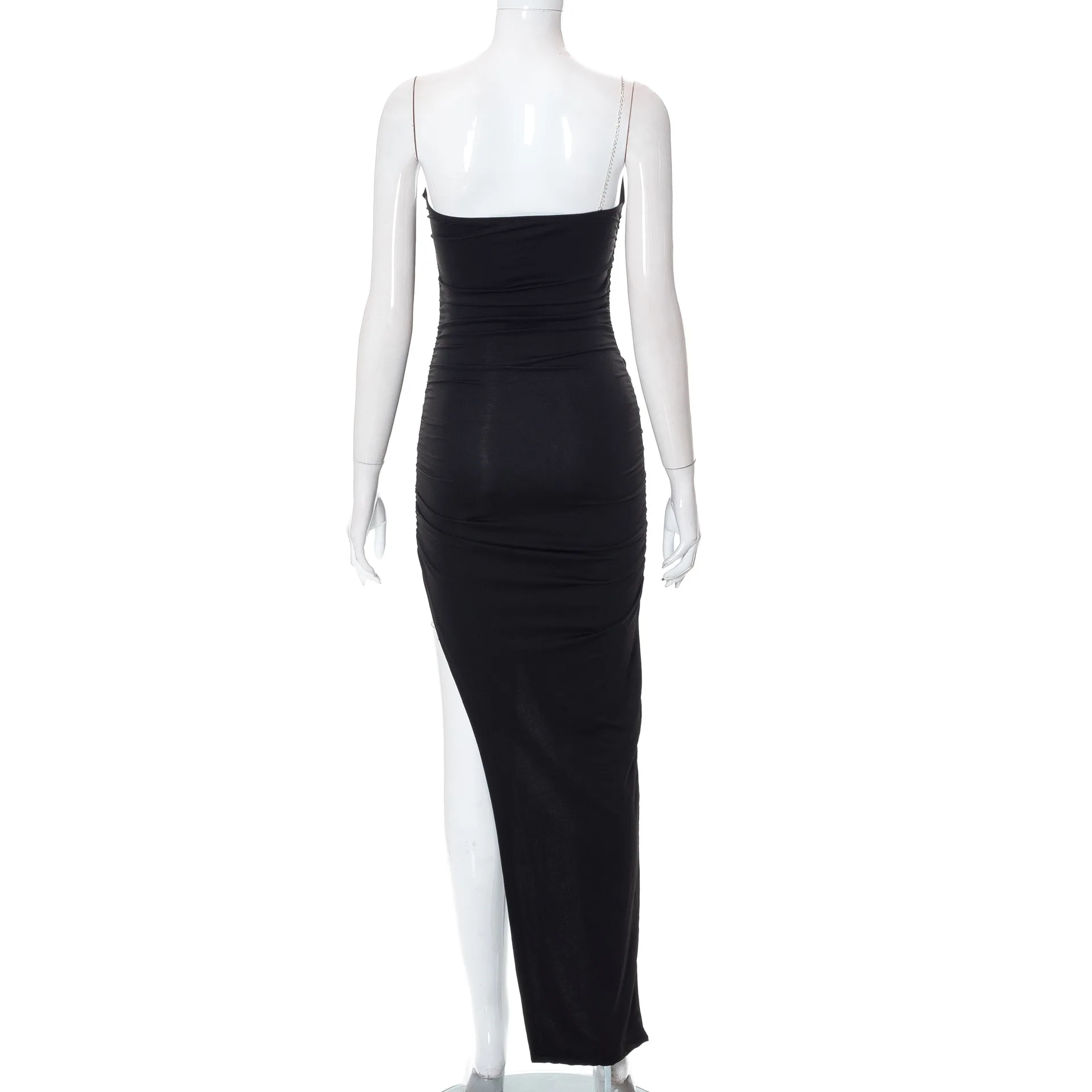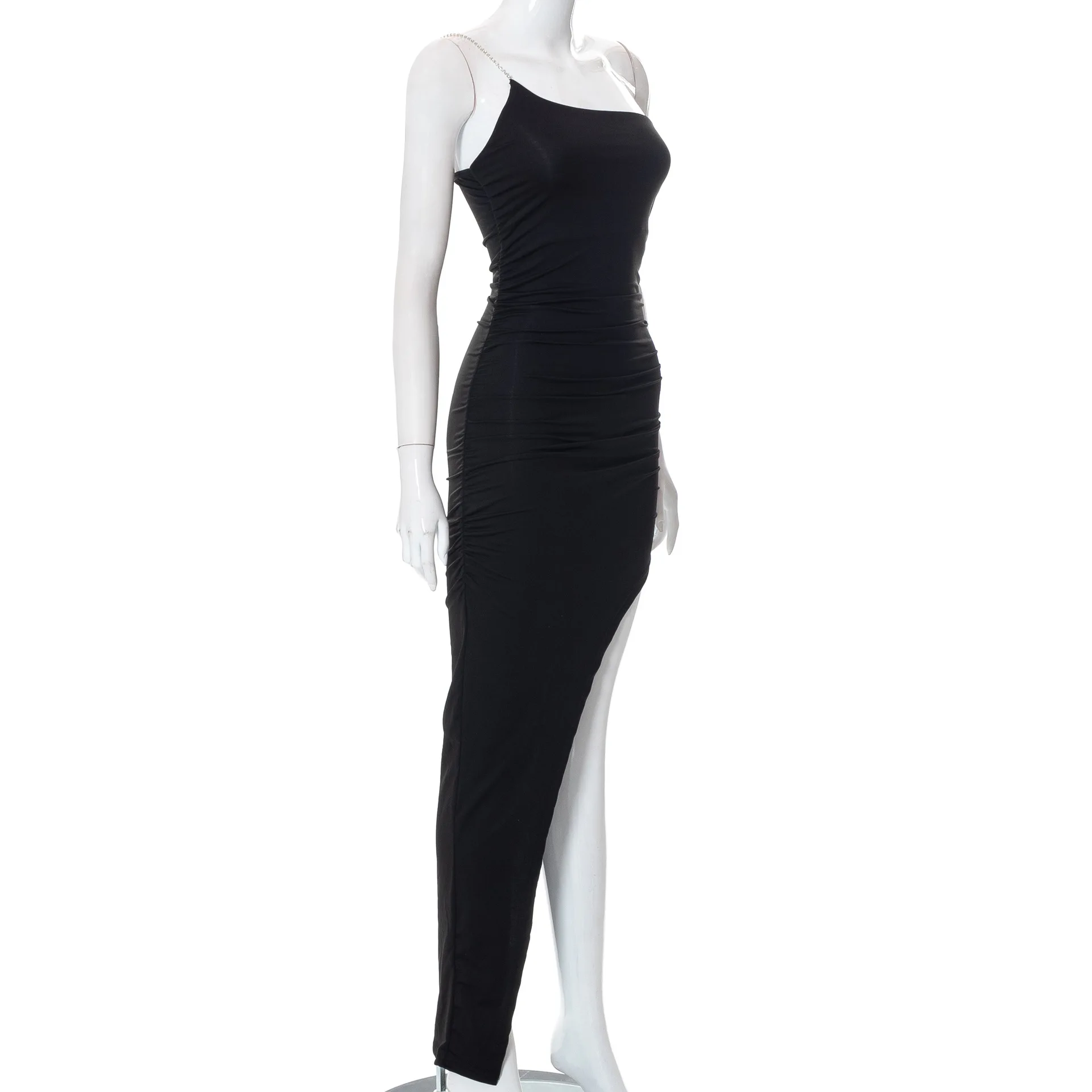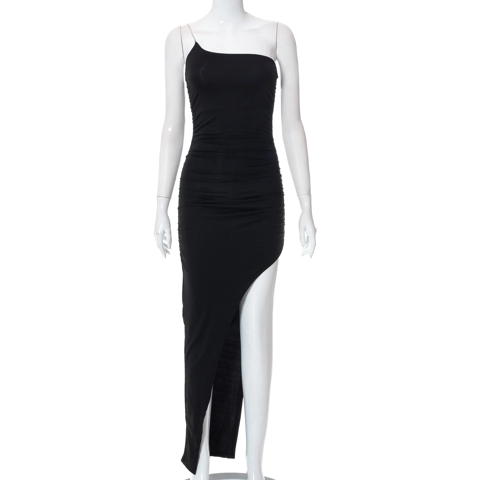 2022 Sexy One Shoulder Backless Maxi Dress Club Party Outfits for Women Summer Sleeveless Elegant Black Straps Prom Dresses