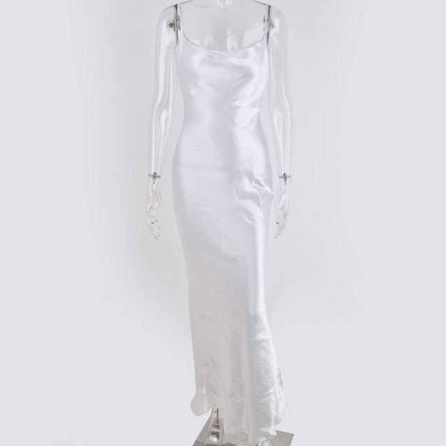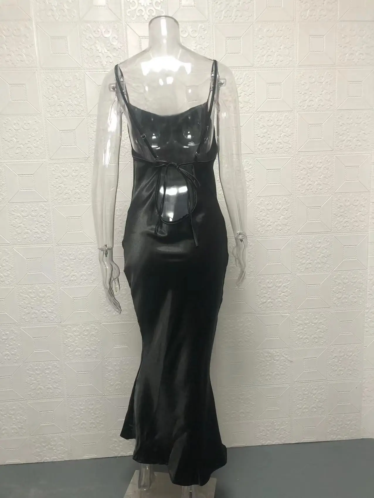 2022 Sexy Spaghetti Strap Backless Summer Dress Women Satin Lace Up Trumpet Long Dress Elegant  Party Dresses