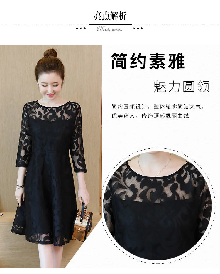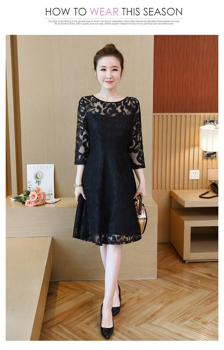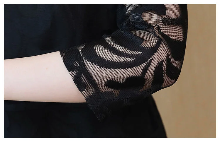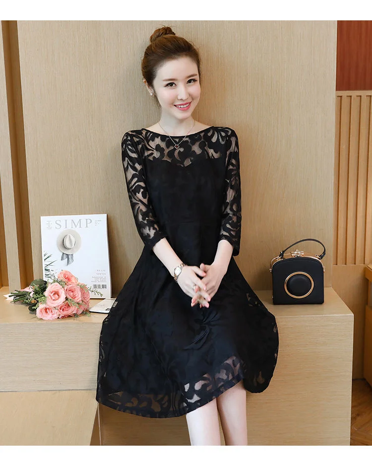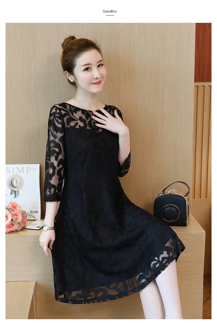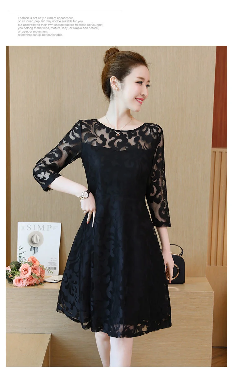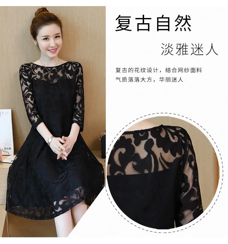 2022 Summer Dress Women New Style Loose-fitting Three-quarter Sleeve Black Elegant Lace Bodycon Casual Dress Fashion Dresses