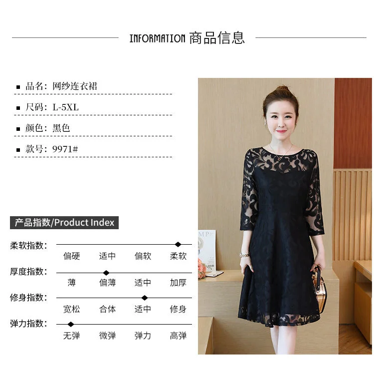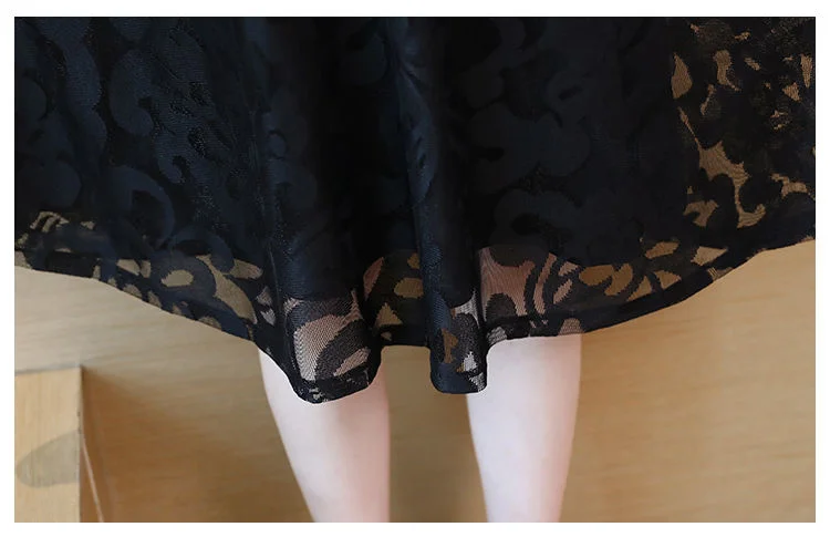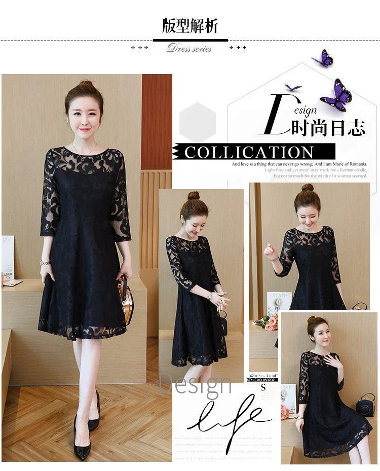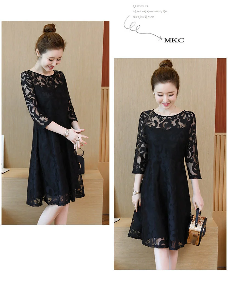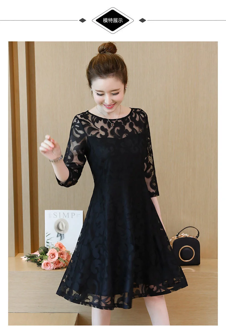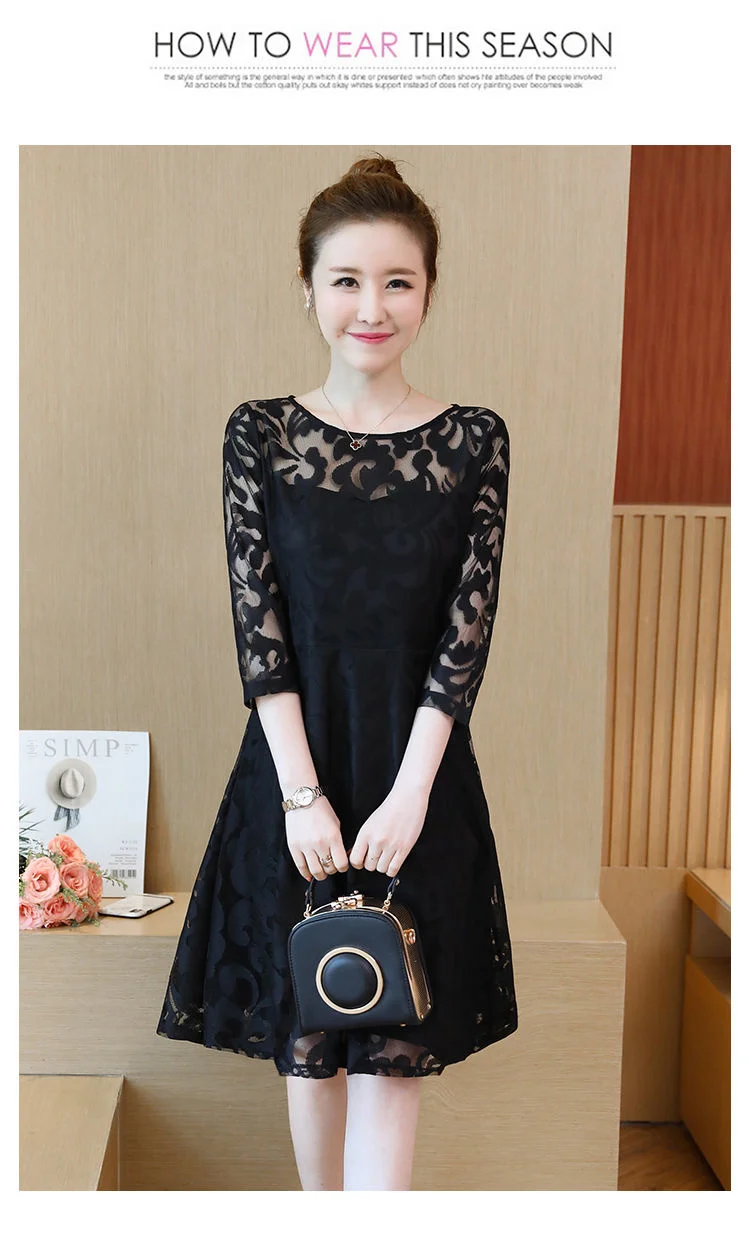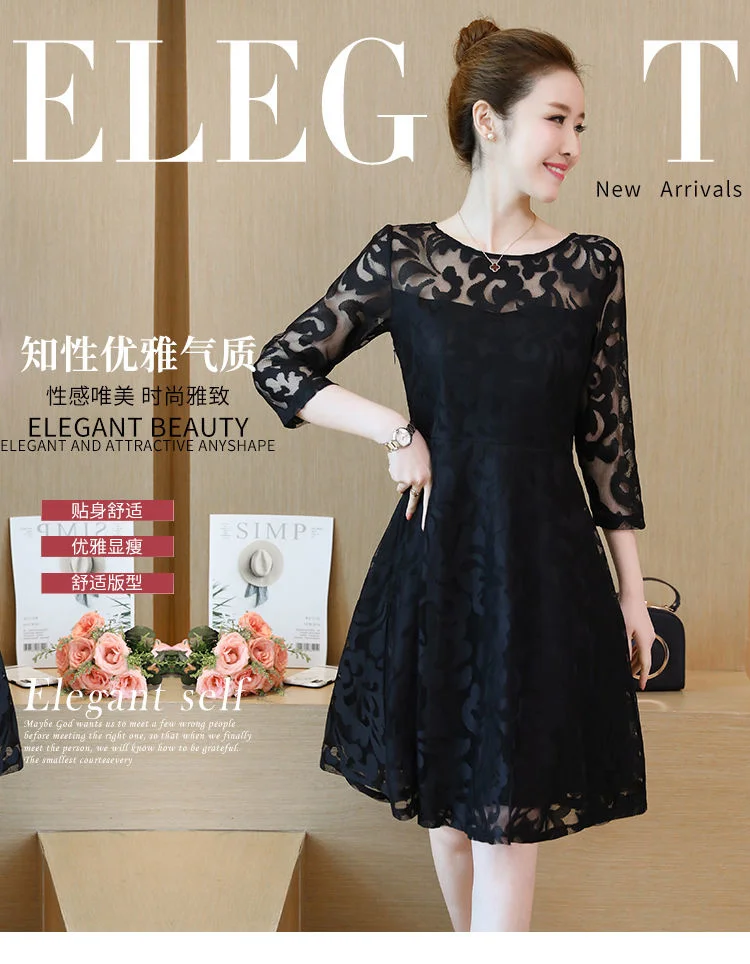 2022 Summer Dress Women New Style Loose-fitting Three-quarter Sleeve Black Elegant Lace Bodycon Casual Dress Fashion Dresses
