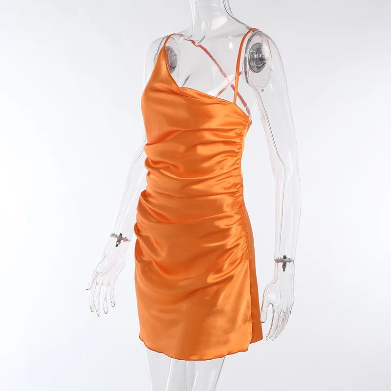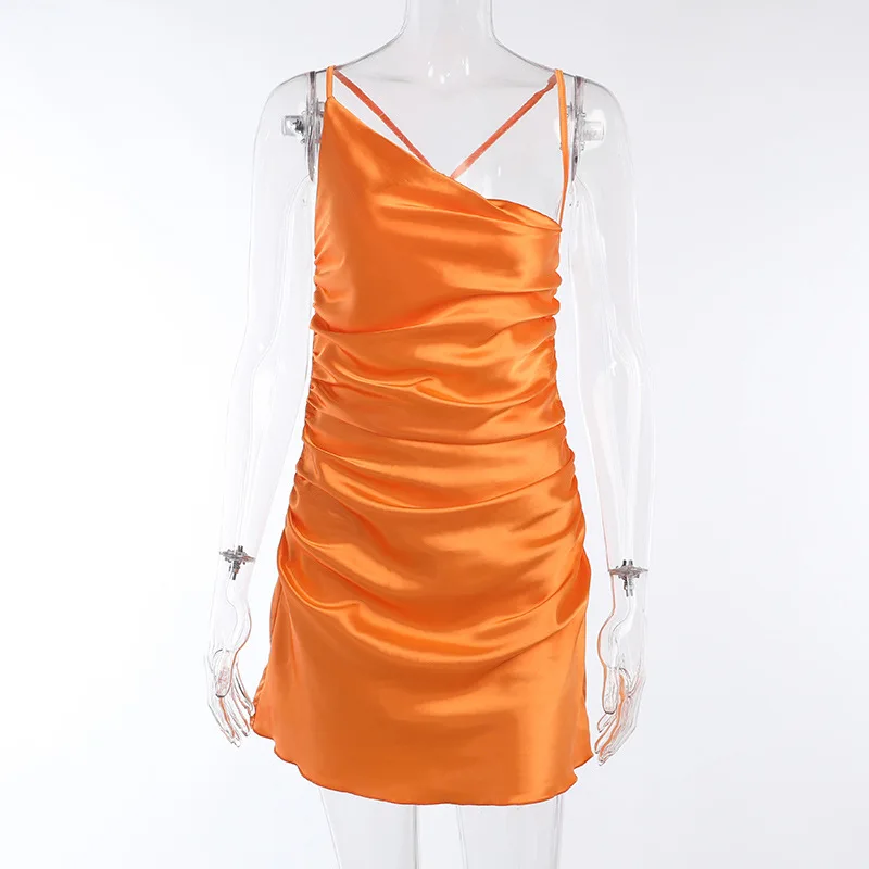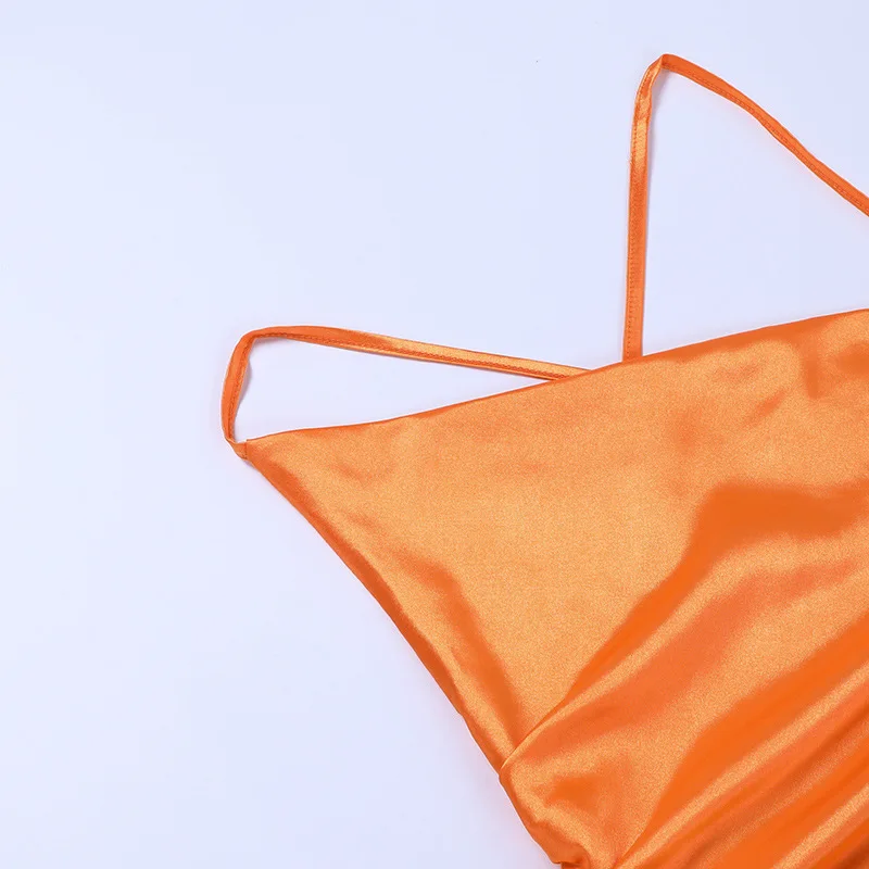 2022 Summer Hot Sexy Orange Spaghetti Strap Backless Casual Evening Party Sexy Elegant Bow Tie Mini Dresses For Women Vestidos