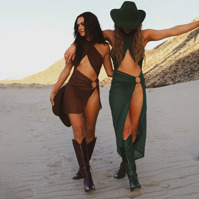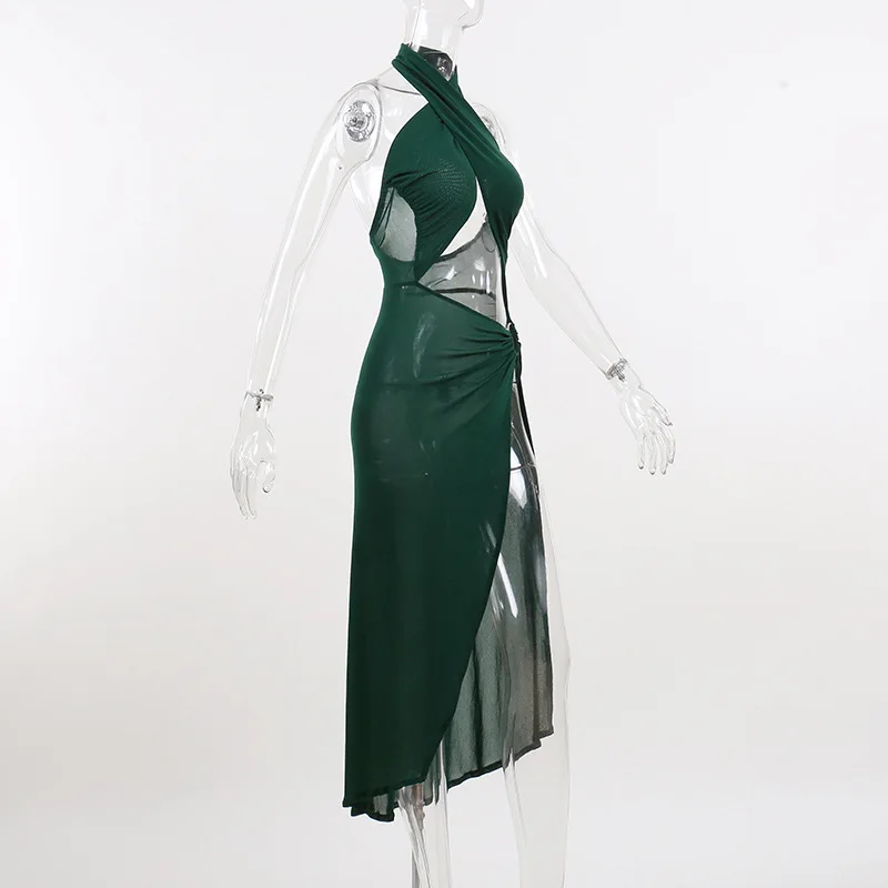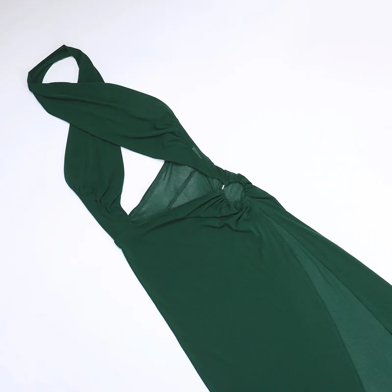 2022 Summer Women's Clothes Spaghetti Strap Halter Sexy Backless Split Maxi Dress Elegant Sleeveless Club Party Dresses Beach