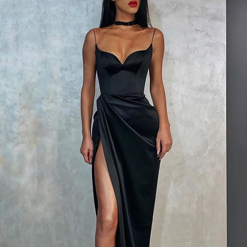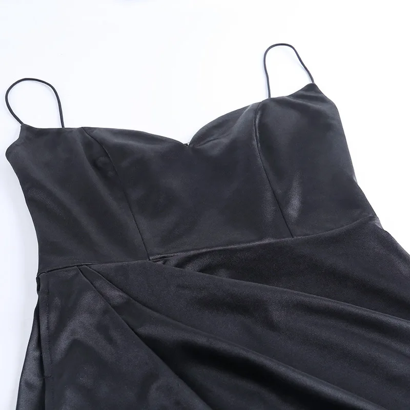 Black Sexy Bodycon Silk Dress Women Backless Slip Satin Dress Spaghetti Strap Hight Split Summer Elegant Party Long Dresses 2021