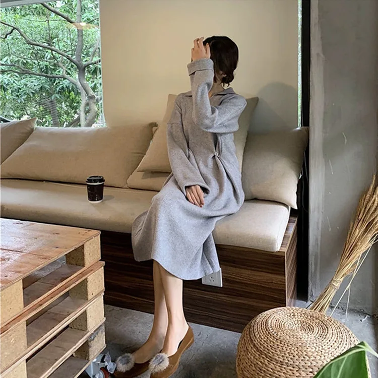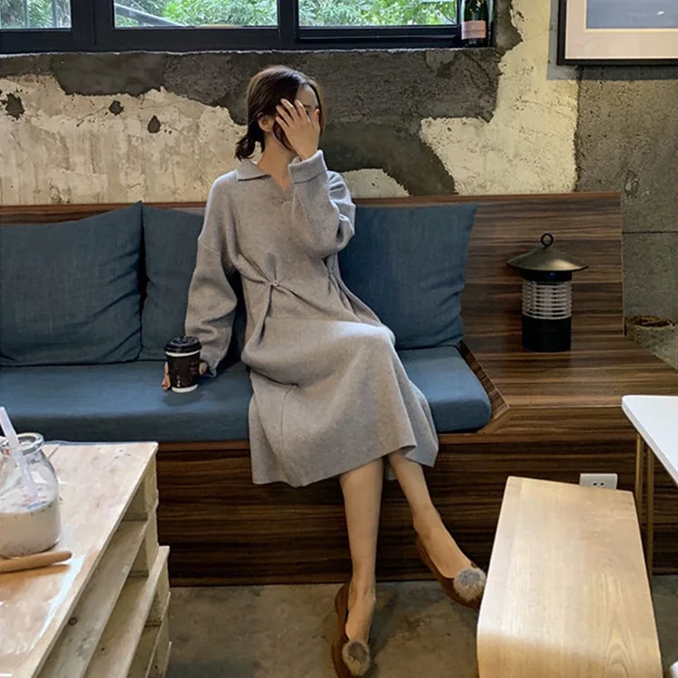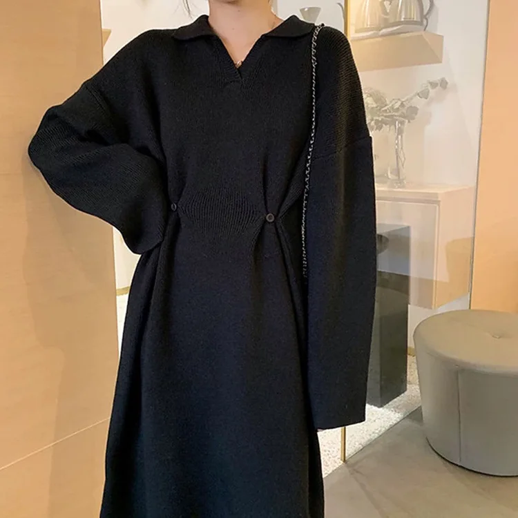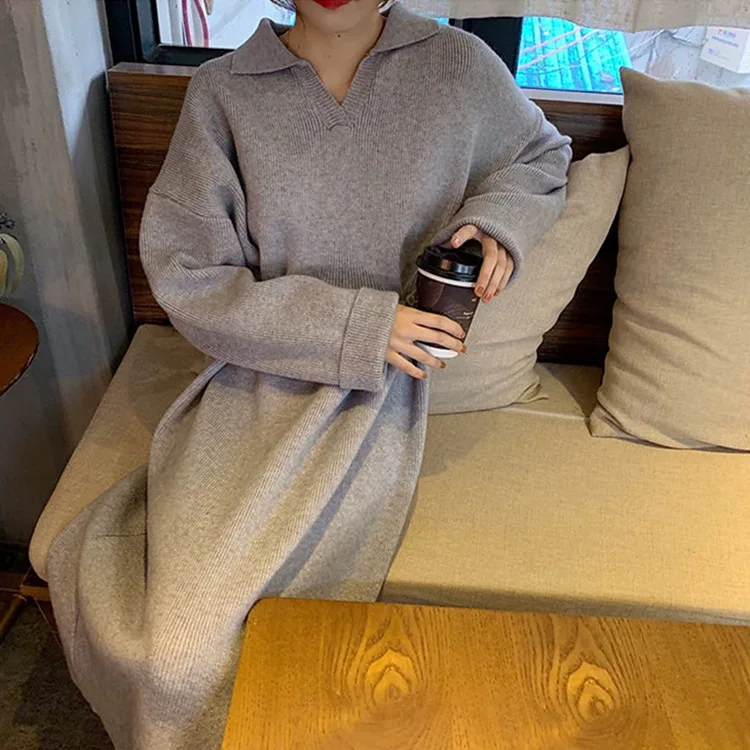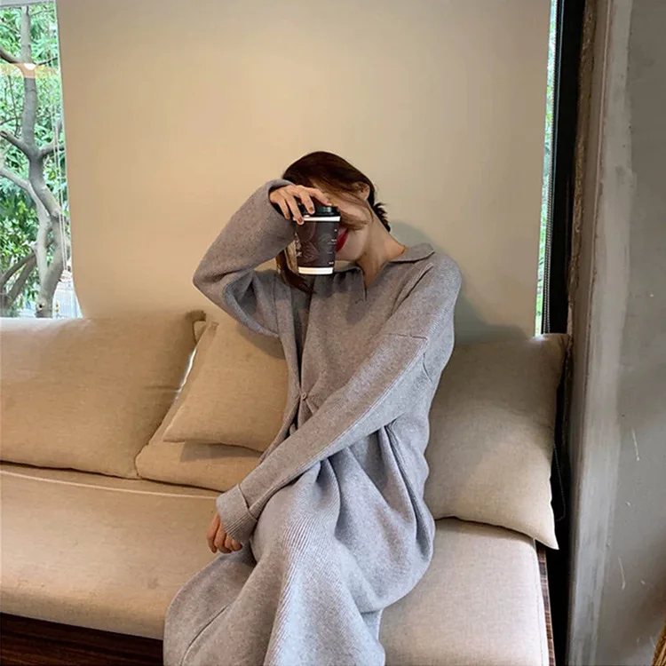 Casual Women's Dresses Design Loose Party Dress Woman Clothes Lazy Sweater Female Elegant Knitted Robe Autumn Oversize Vestidos