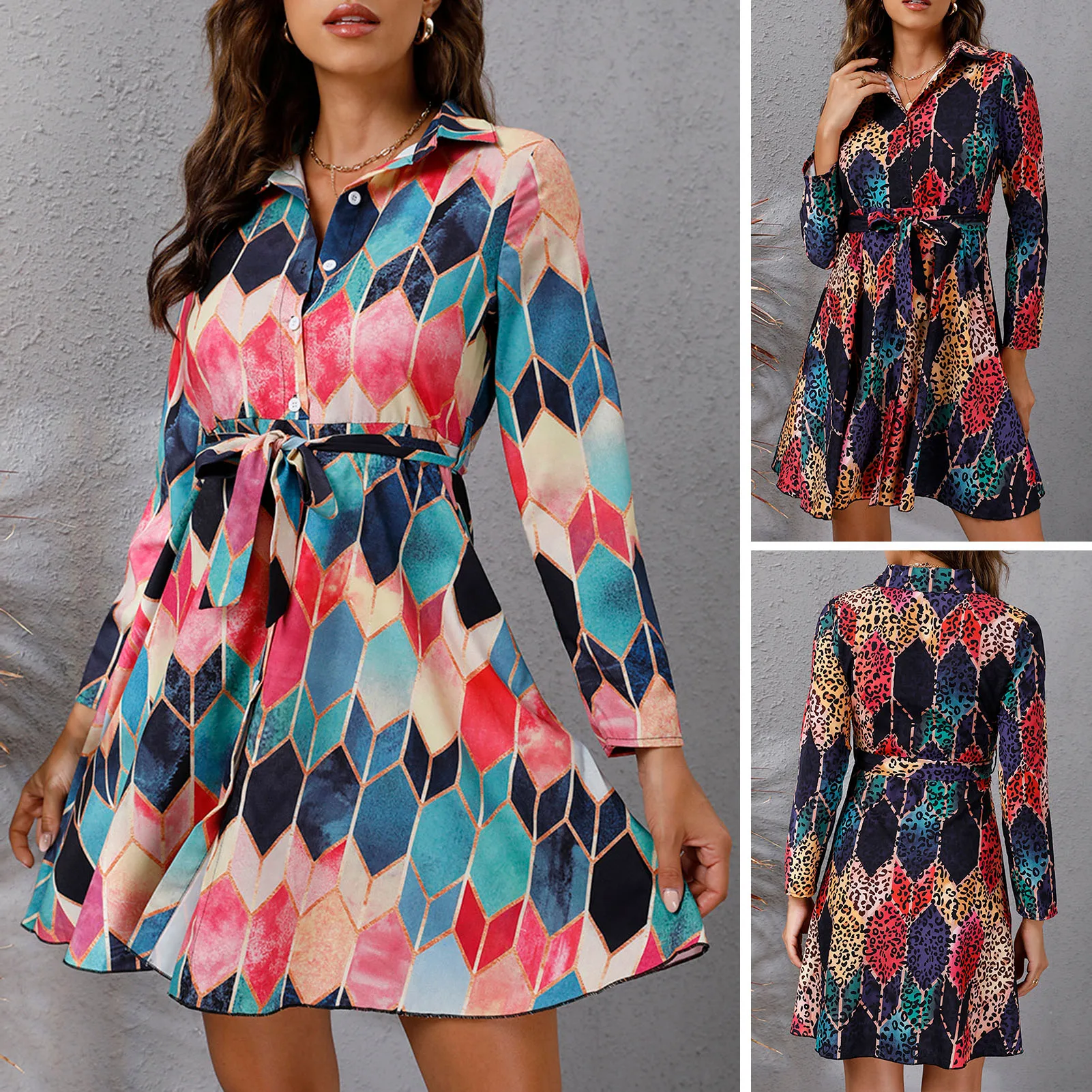 Mini dresses are never a poor choice when deciding on a going-out outfit. If you're in the mood to add some color to your closet, you can't go wrong with this colorful printed dress.