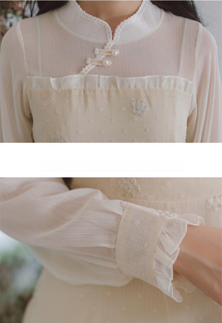 Dresses for women 2021 Chiffon Elegant Cheongsam Vestidos Femme Disc Button Retro Stand Collar Embroidery Slim Sweet Dress