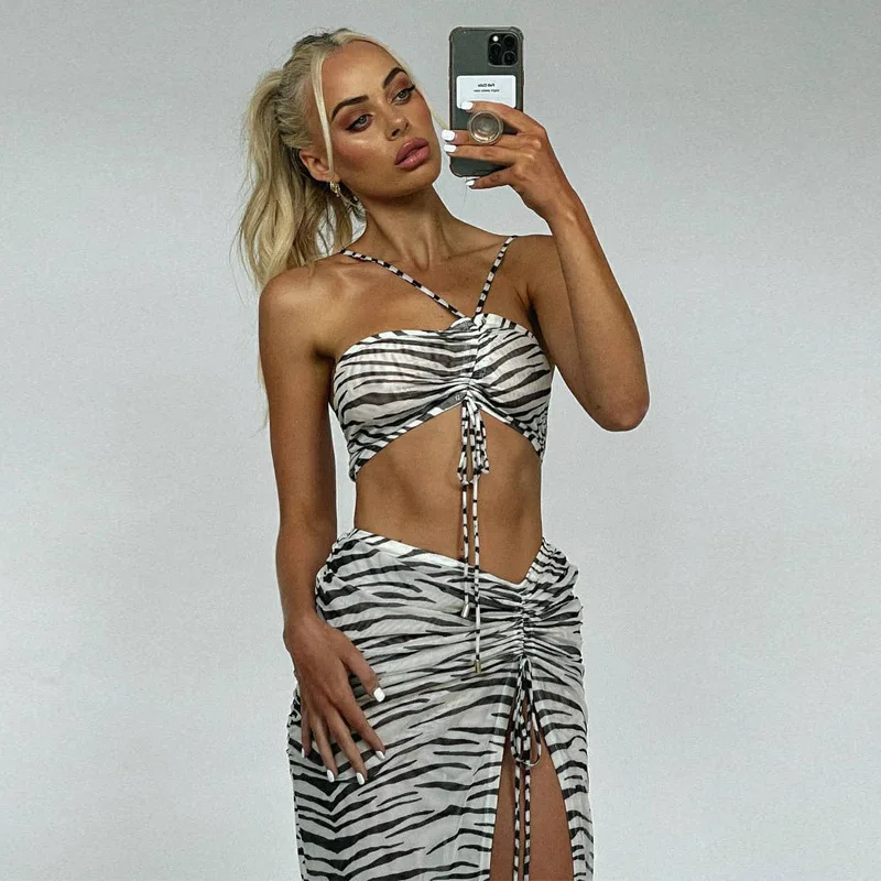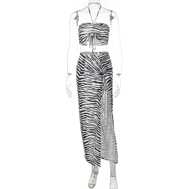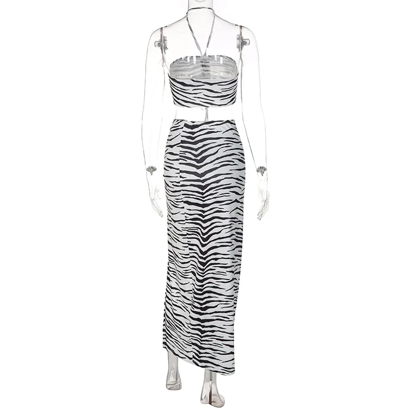 Dresses For Women 2022  Summer New Zebra Sexy Outfits Maxi Skirt Two-Piece Suit Halter Top And Split Skirts Sets Bodycon Dress