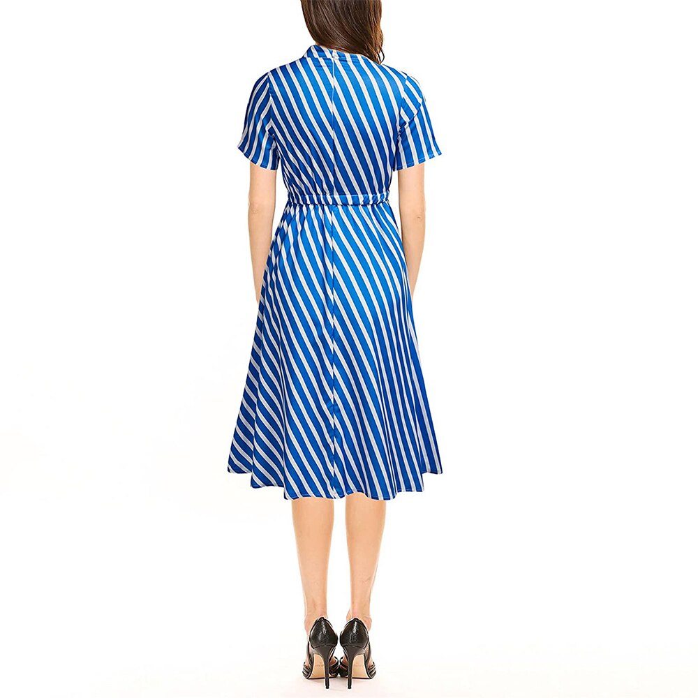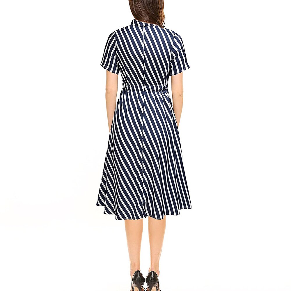 Elegant Short Sleeve Striped Midi Dress Woman Summer Fashion Casual V-neck A-line Dresses For Women 2021 Black Office Robe Femme