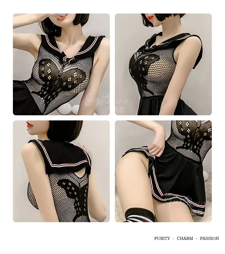 Erotic Lingerie Temptation Flap Neck Butterfly Japanese Students Hip Sexy Net Dress Kawaii Lingerie Cosplay Slutty Dresses