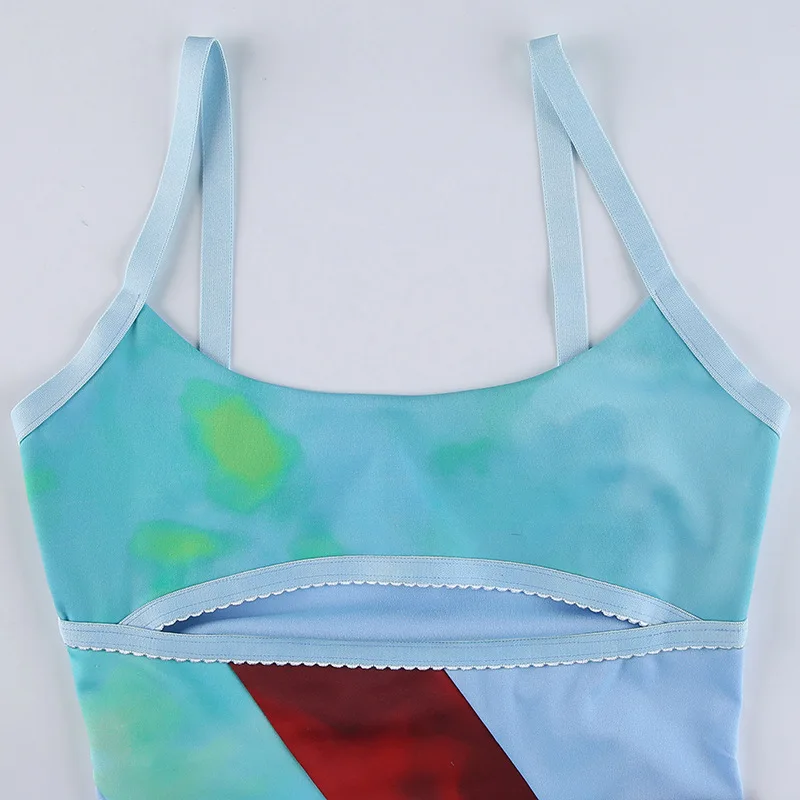 Female Patchwork Dresses Sexy Sleeveless Strap Mini Robes Hollow Out Backless Fashion Short Dresses Women Summer Party Vestidos