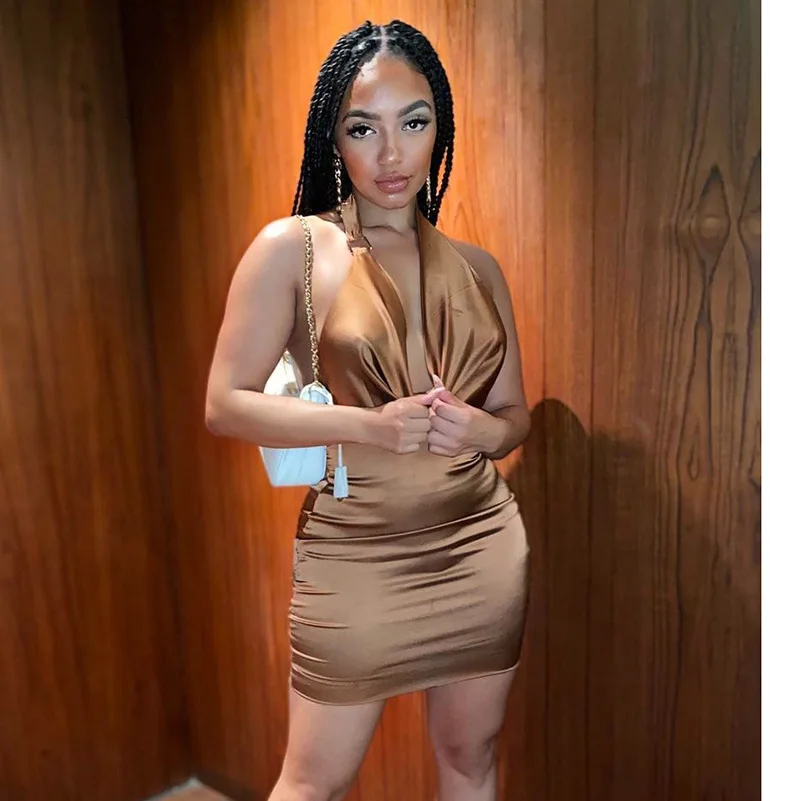 Halter Bodycon Mini Sexy Dress Women Backless Elegant Evening Party Prom Wrap Slip Short Dresses 2021 New Fashion Summer Clothes