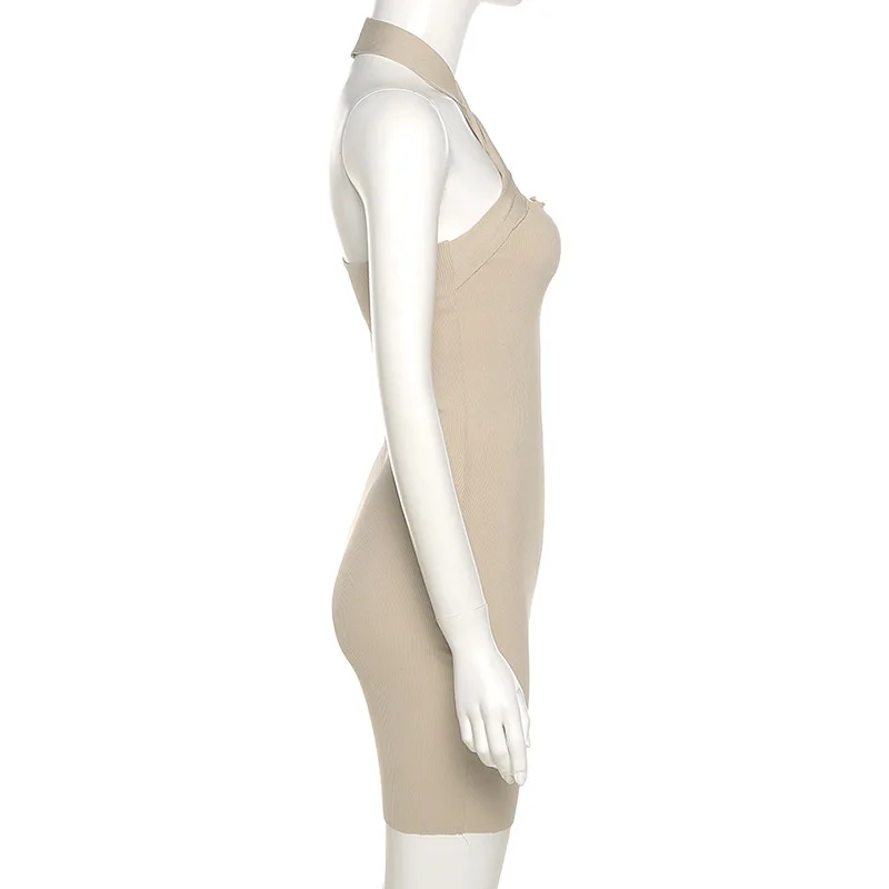 Halterneck Cross Sexy Mini Dresses Women Sleeveless bodycon Party Backless Dress 2021 Summer Wrap Tight Robe Casual Streetwear