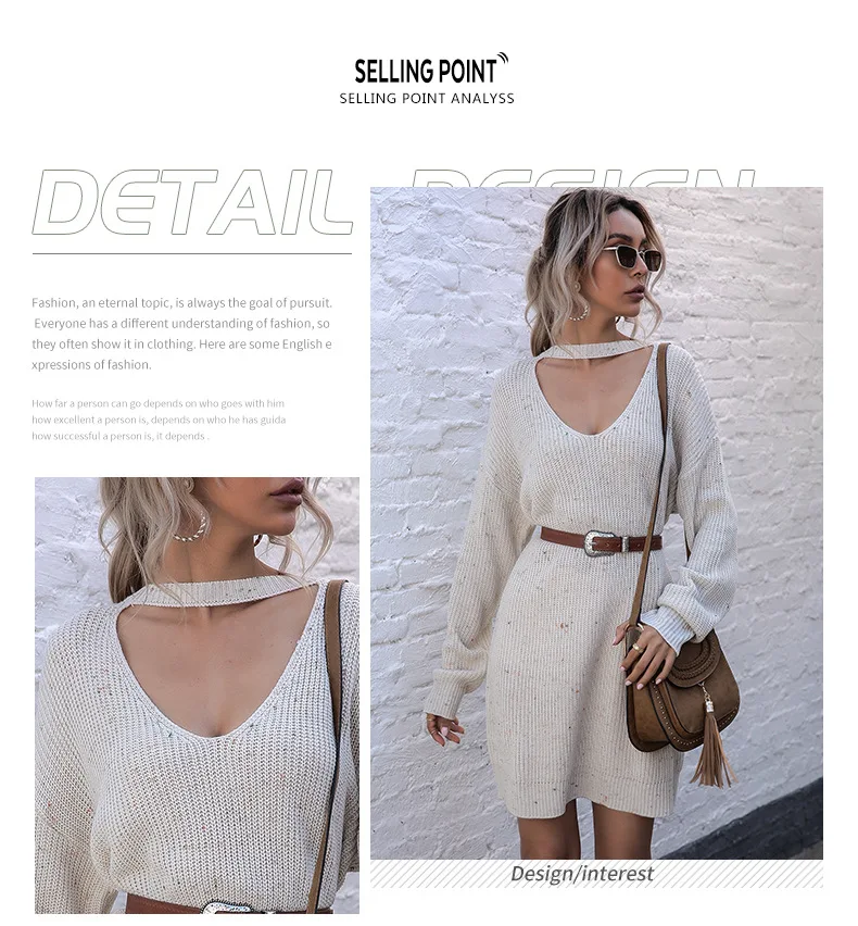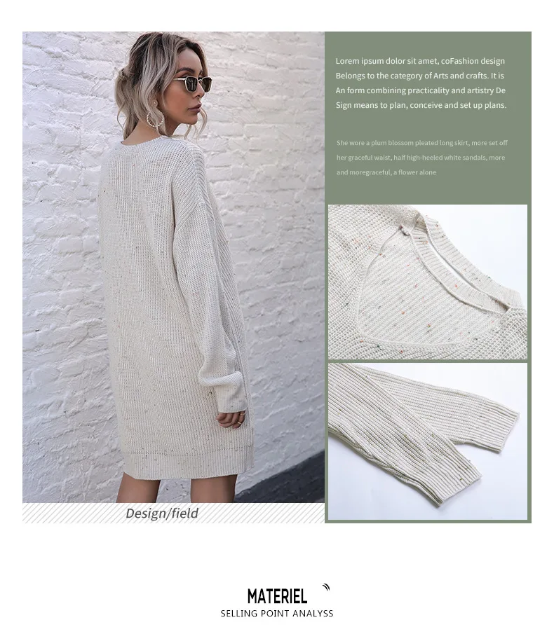 Knitted Dresses for Women 2021 Autumn New Low V-neck Women Sweater Inner Tops Length Section Long Sleeve Pullover Dress Women