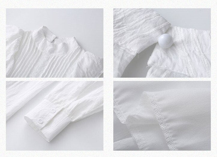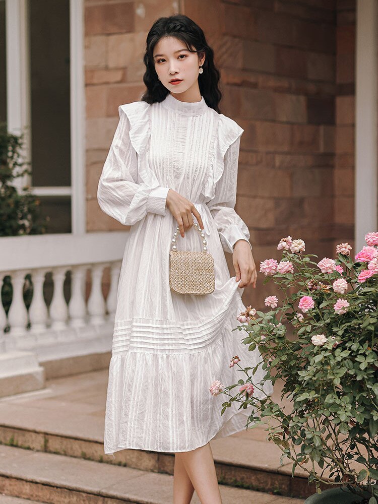 Korean Loose Cute White Dresses For Women 2021 Ruffle Stitching Stand-up Collar Small Fresh and Sweet Dress Roupas Femininas