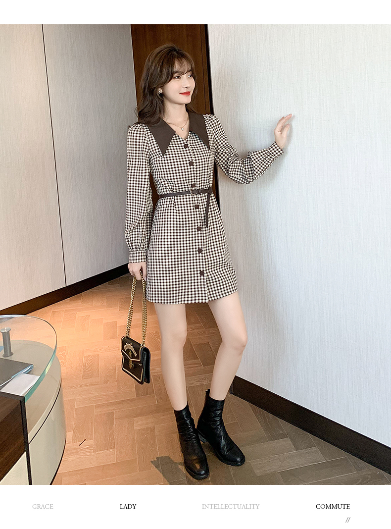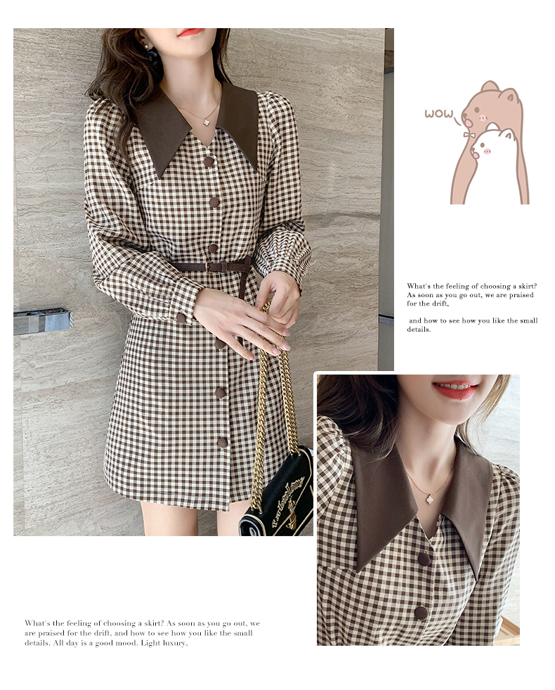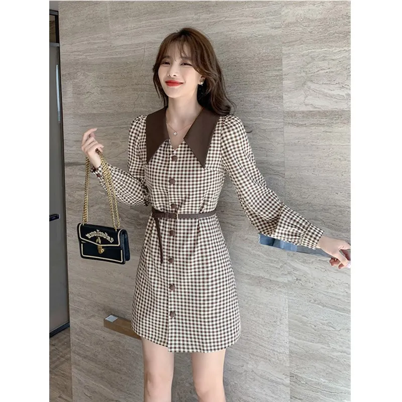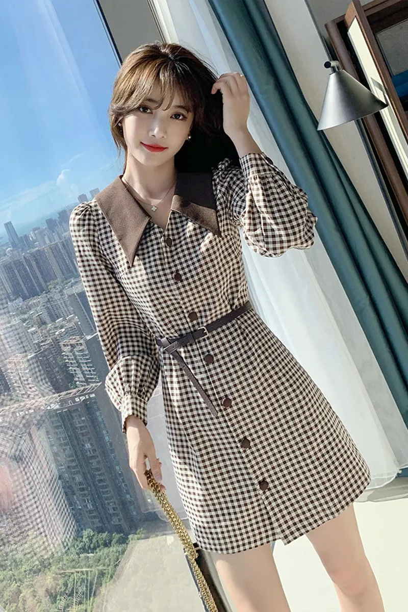 Long Sleeve Plaid Mini Dress Women Autumn Turndown Collar Single-breasted Korean Style Fashion Party Dresses Female Vestidos