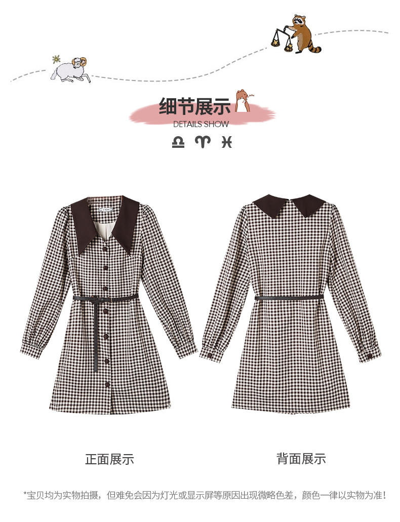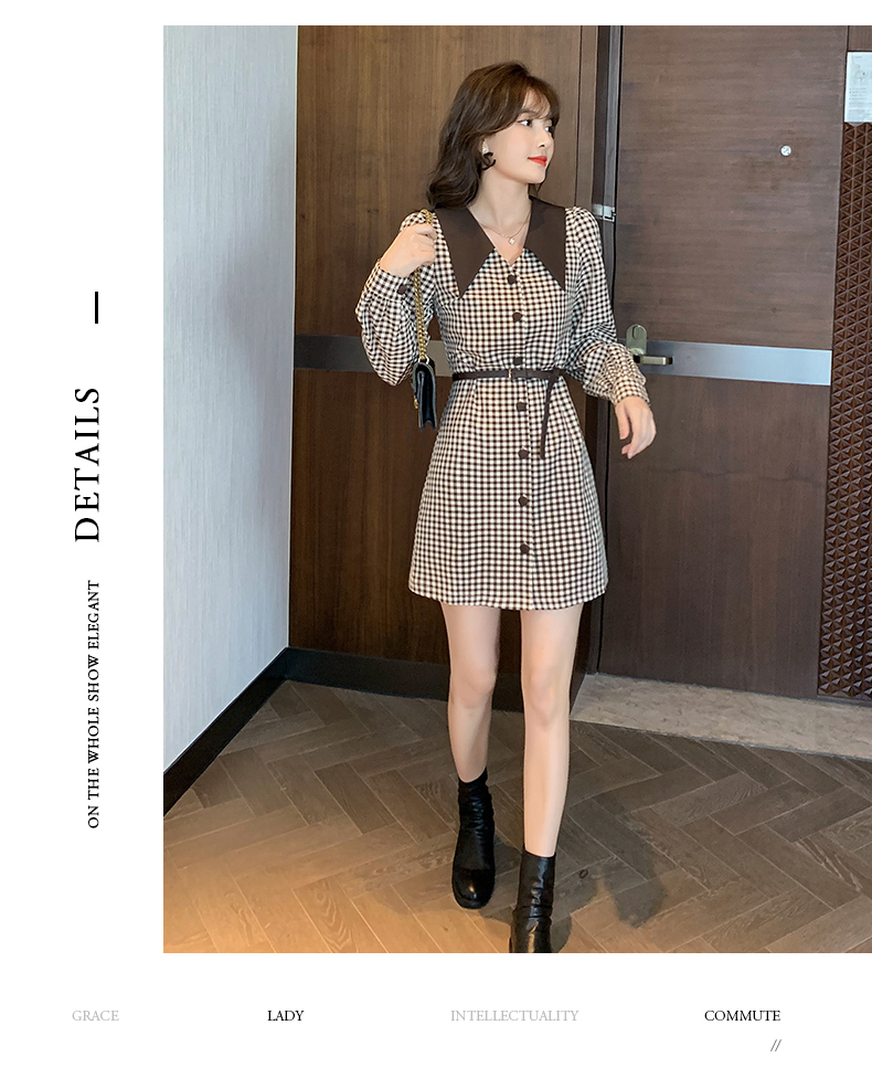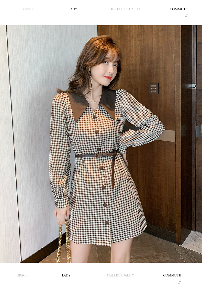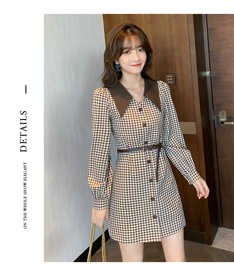 Long Sleeve Plaid Mini Dress Women Autumn Turndown Collar Single-breasted Korean Style Fashion Party Dresses Female Vestidos
