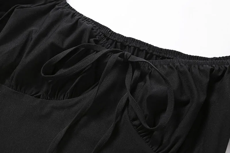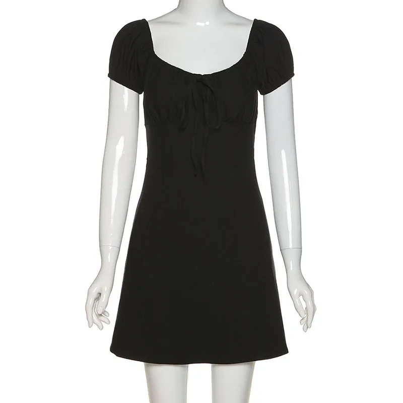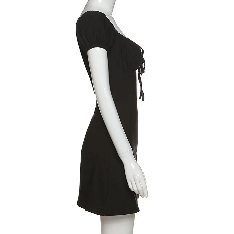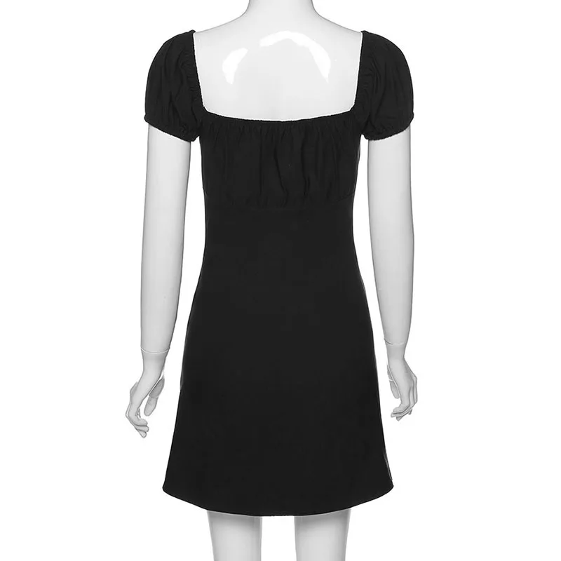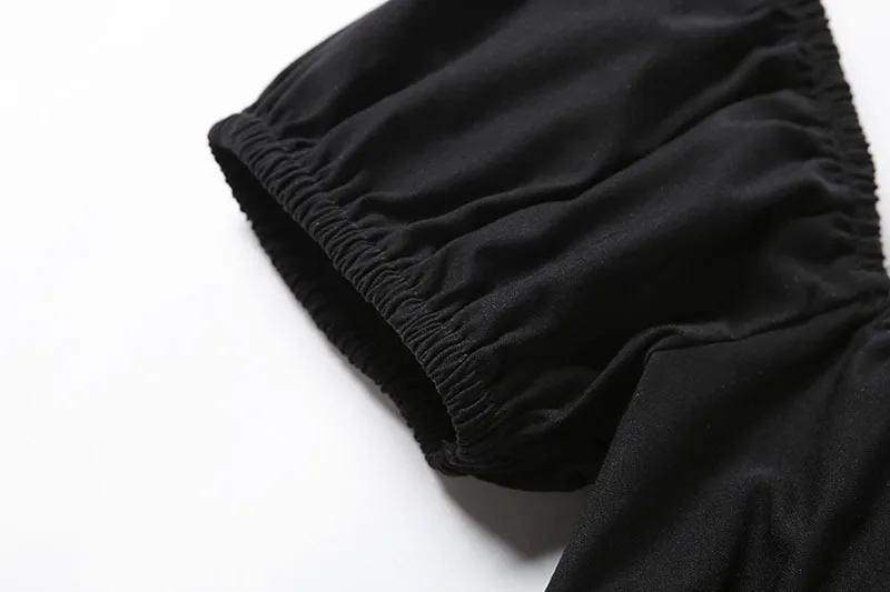 puff sleeve sexy low collar slim black dresses woman elegant simple high street female fashion party club mini dress