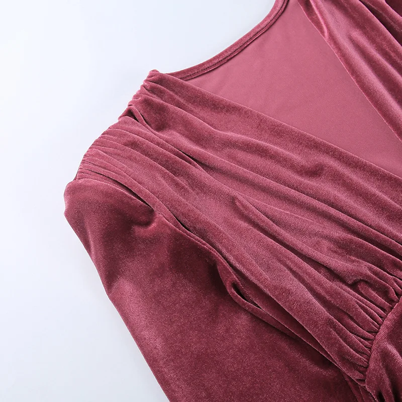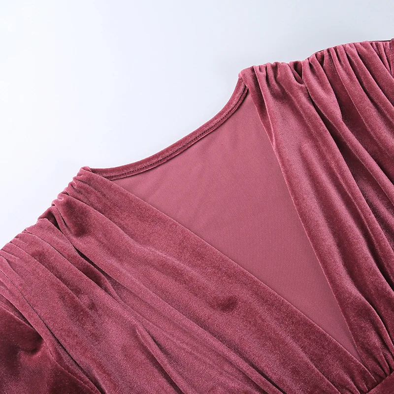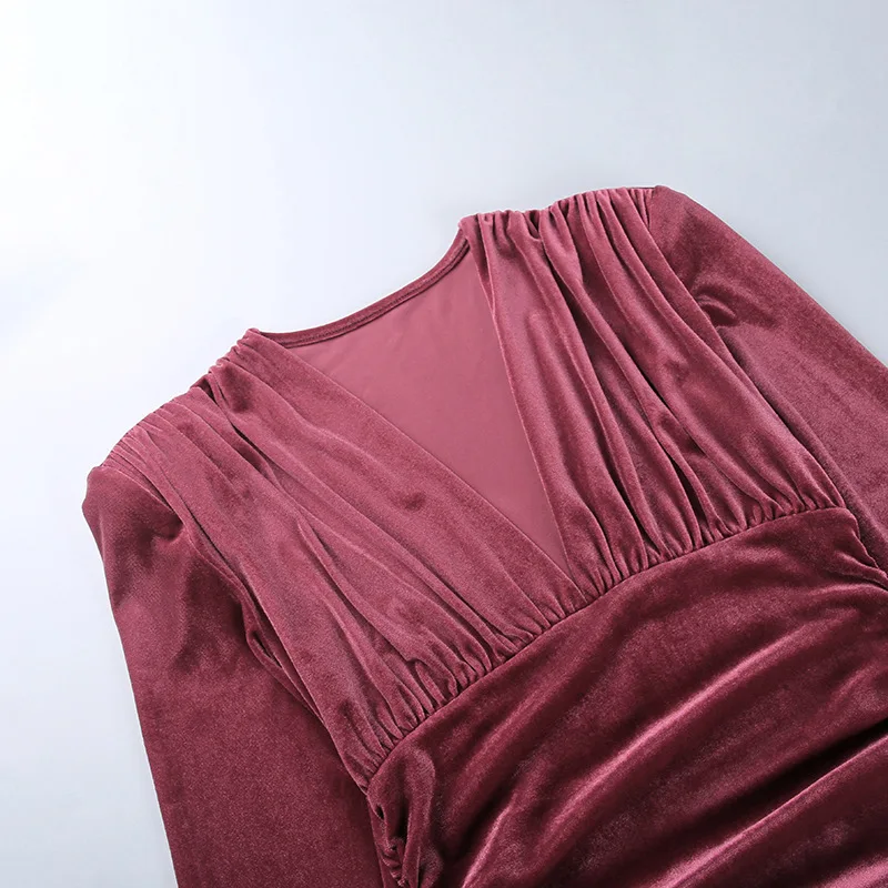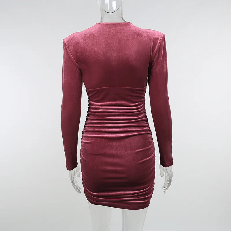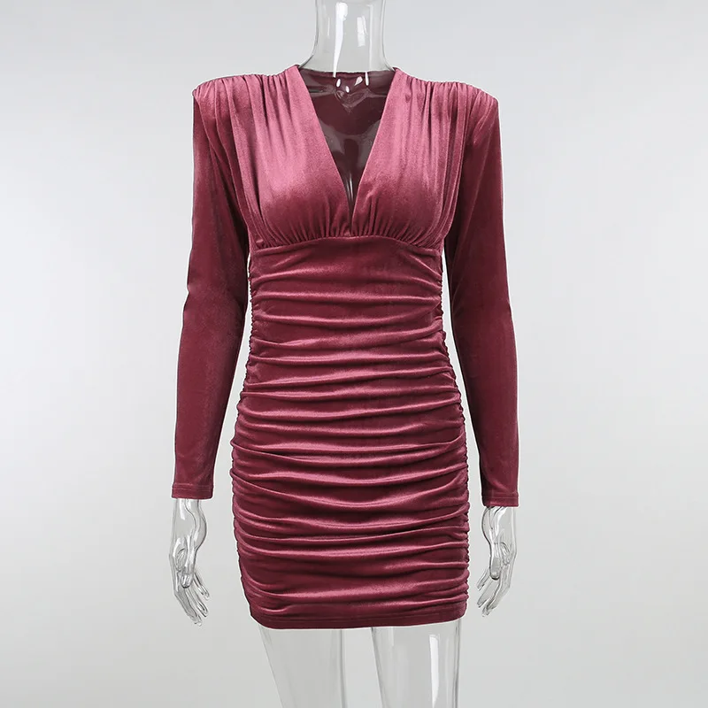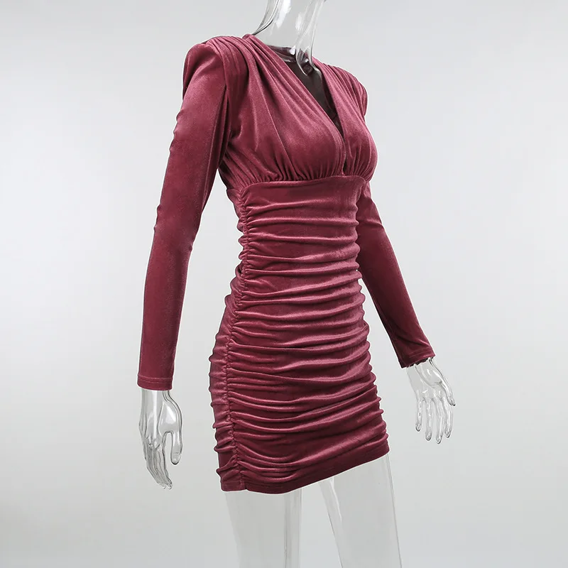 Ruched Velvet Wrap Mini Dress Long Sleeves Women's Dress for Women 2022 Elegant Fashion Deep V Neck Sexy Bodycon Dresses