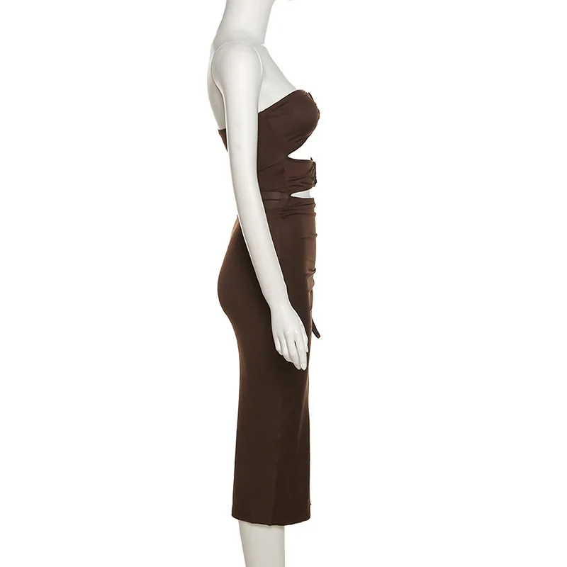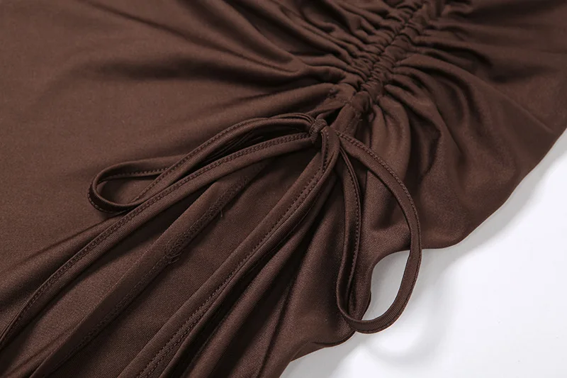 Sexy Off Shoulder Backless Bodycon Midi Dress Women Elegant Hollow Out Drawstring Slit Ruched Prom Club Party Dresses 2021Summer
