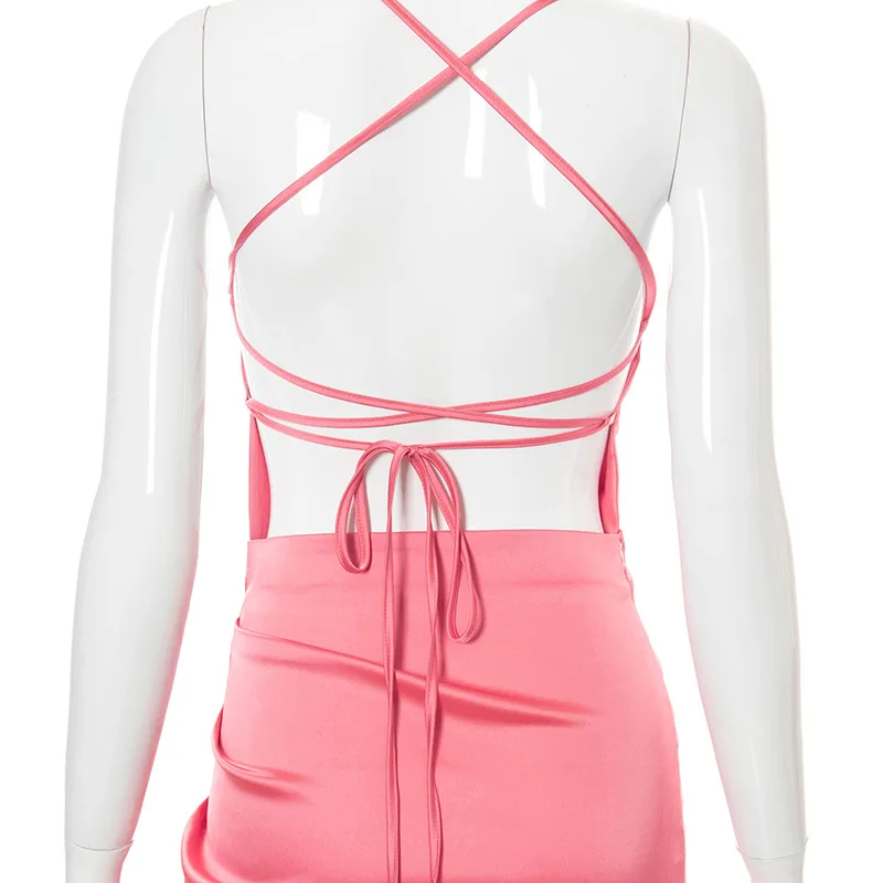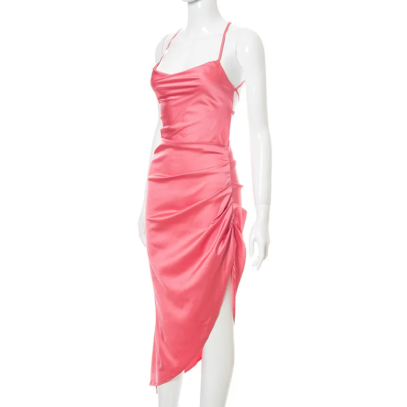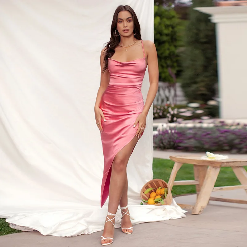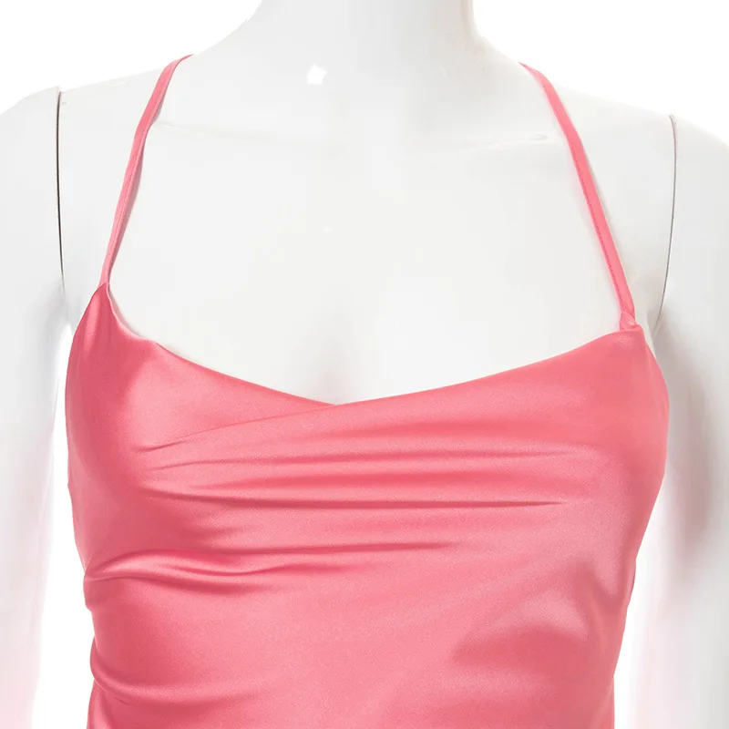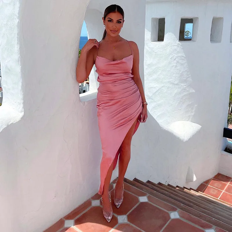 Sexy Spaghetti Strap Skinny Satin Wrap Dress Women Birthday Summer Fashion Elegant Party Casual Backless Tight Long Dresses