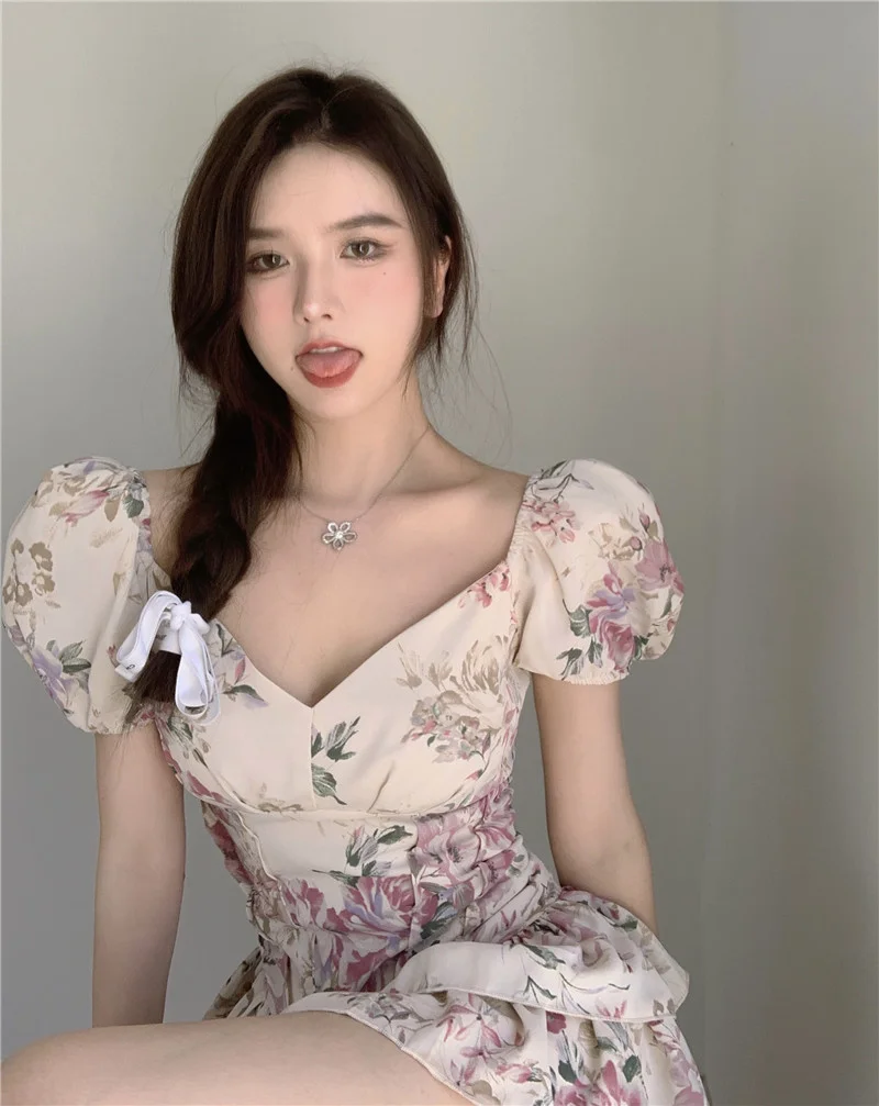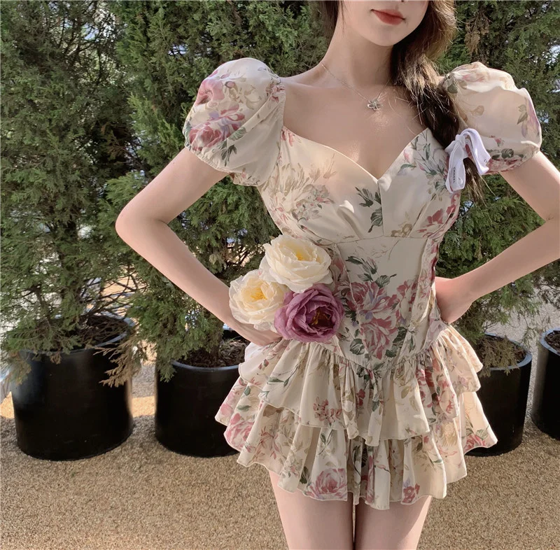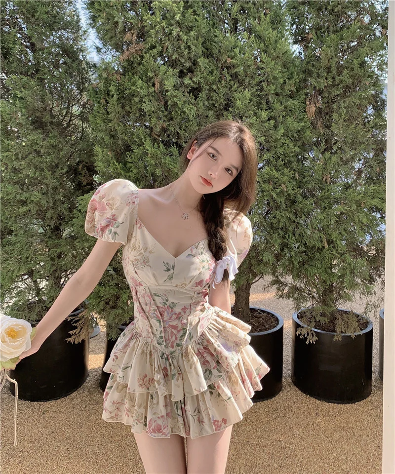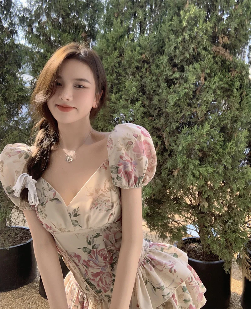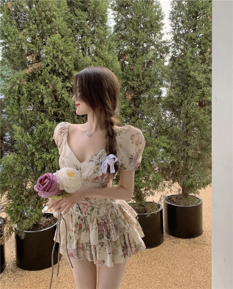 Sexy V-neck Party Mini Dresses Summer 2021 Ladies Print Puff Sleeve Women Bodycon Beach Vintage Bud Robes Boho Fashion Vestidos