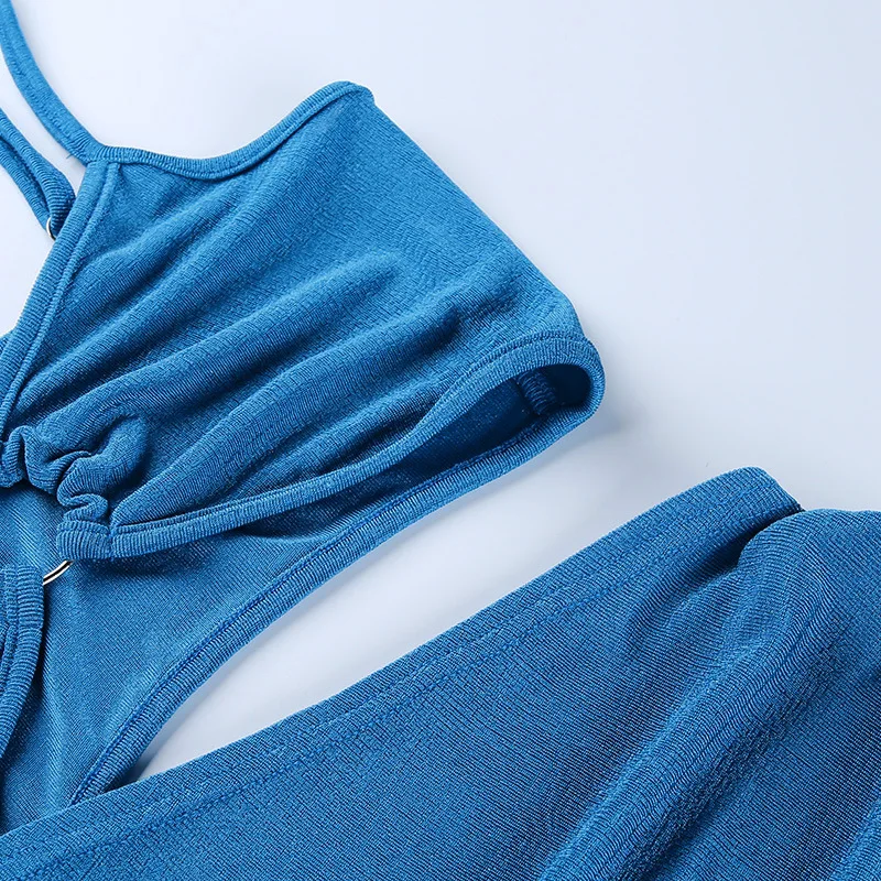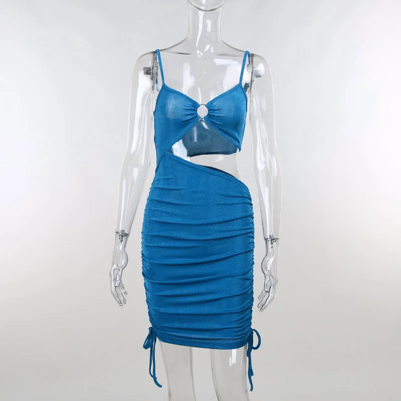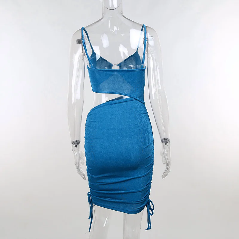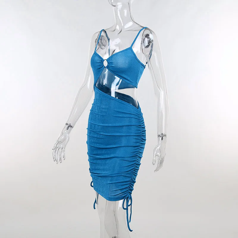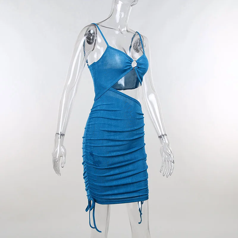 Spaghetti Strap Sexy Cut Out Mini Dresses Women Backless Bodycon Drawstring Tight Party Club Short Dress Summer Vacation Outfits