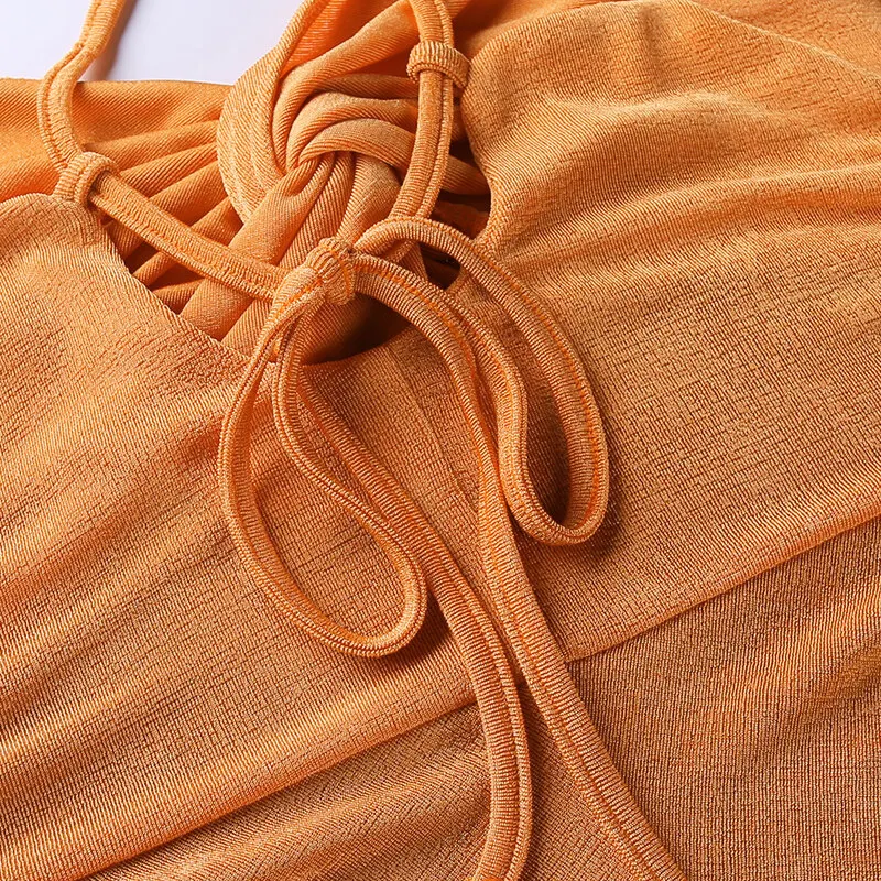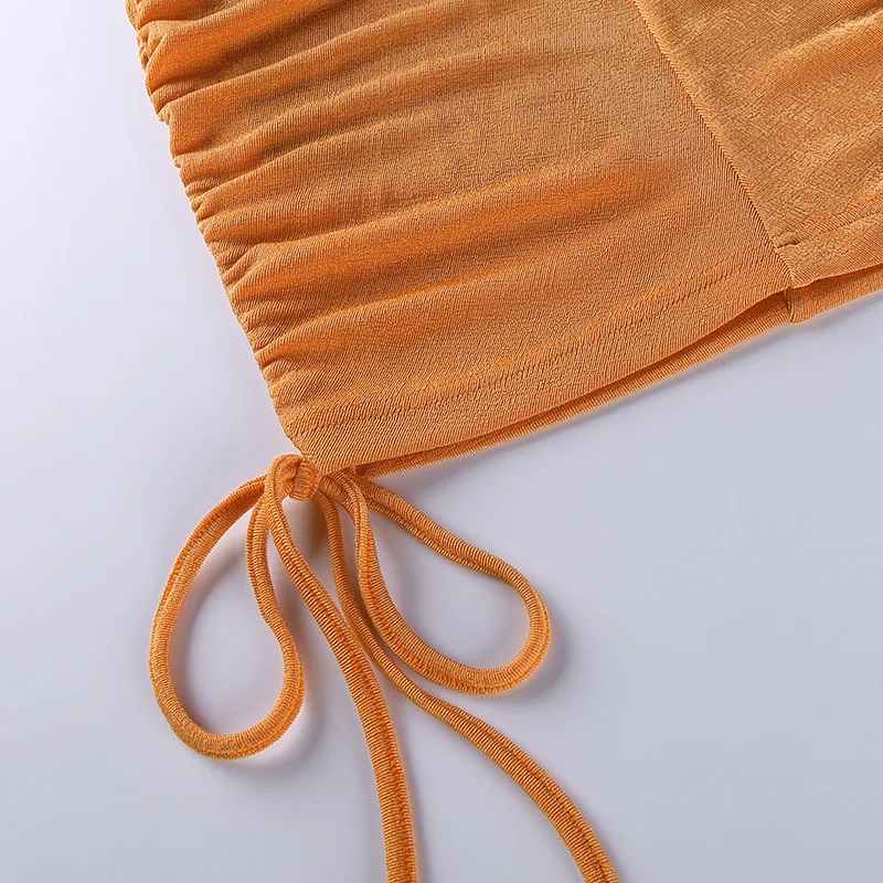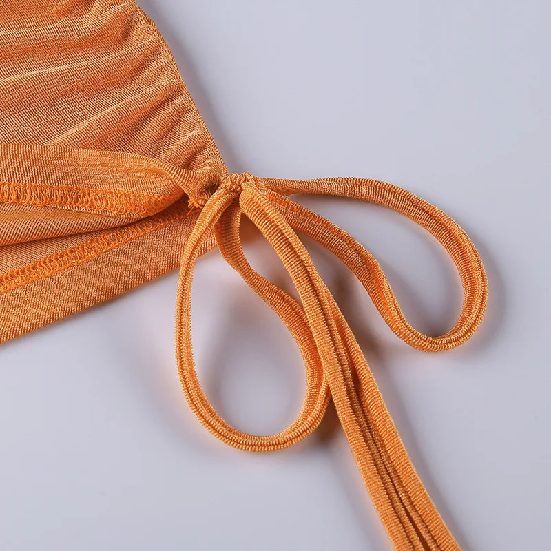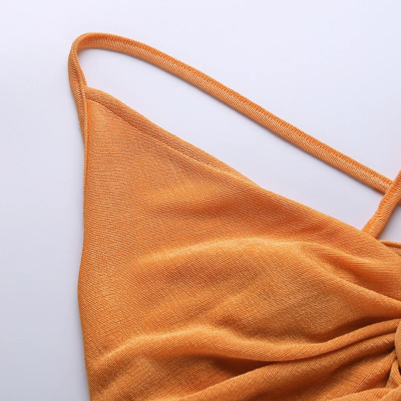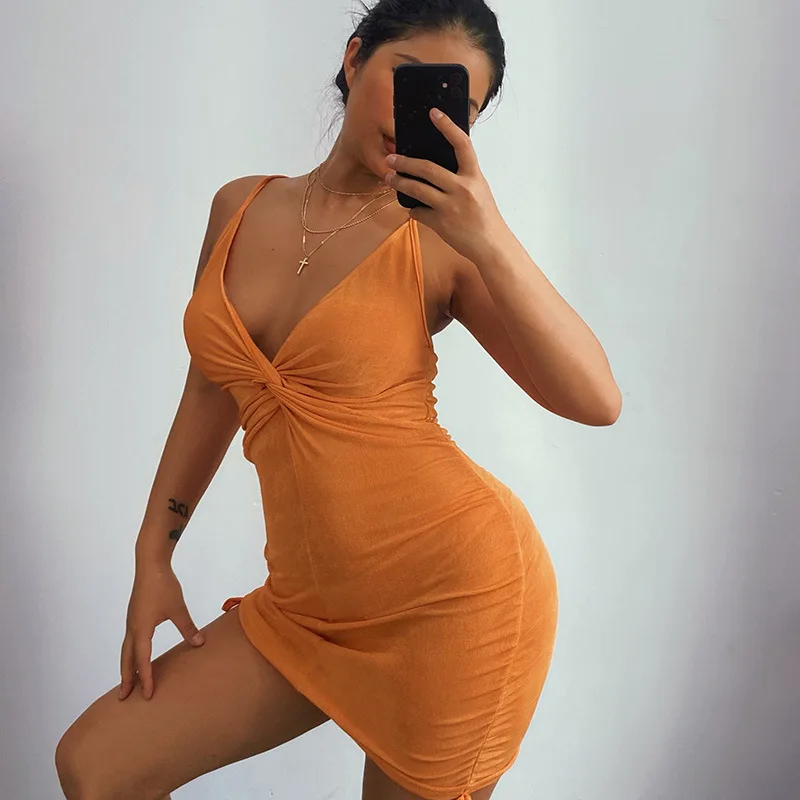 Spaghetti Strap Sexy Knitted Bodycon Mini Dresses Women Deep V Neck Backless Drawstring Party Club Short Dress Summer Vacation